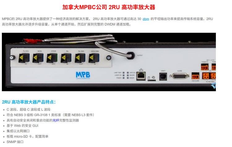 MPBC 2RU高功率放大器-长距离无中继光链路的强劲保障