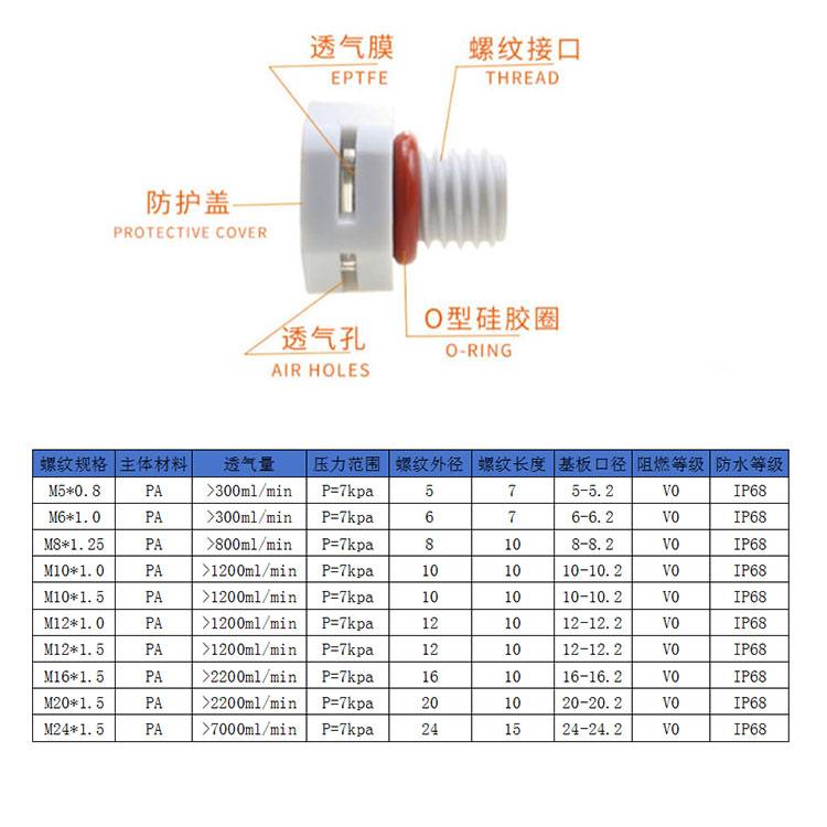 龙三塑胶厂供应M8*1.25防水透气阀 灯具配件 投光灯 led呼吸器