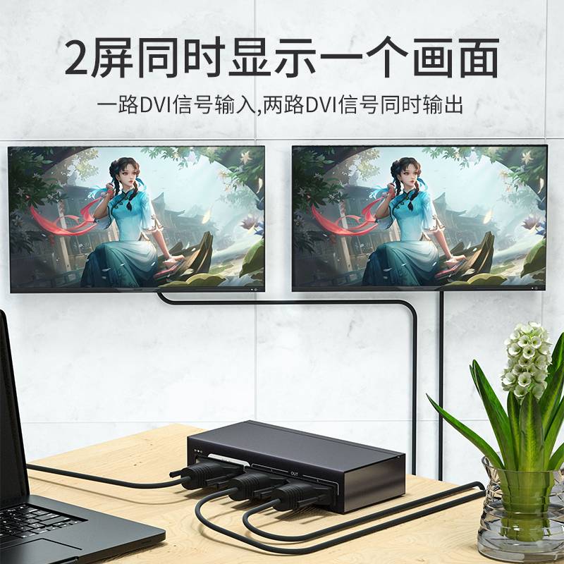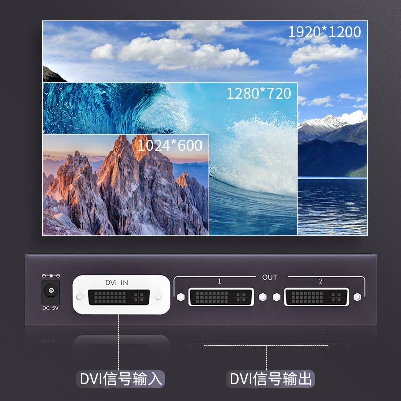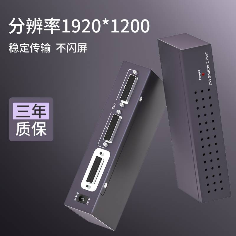 腾捷兴 DVI分配器2口一进二出分频器支持1600*1200分辨率