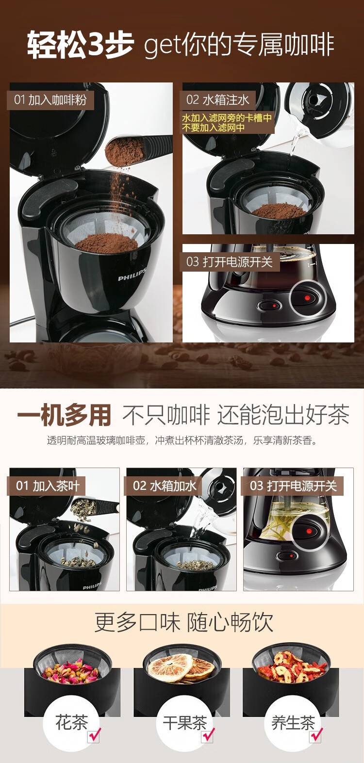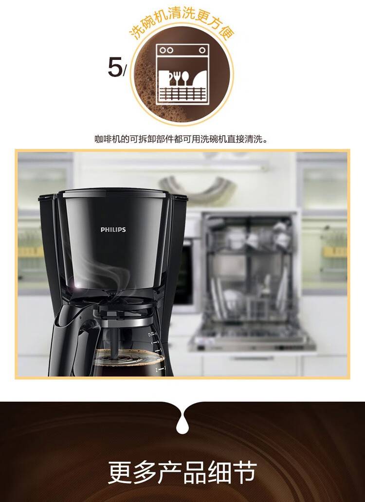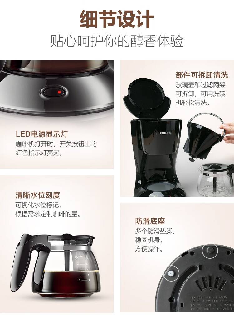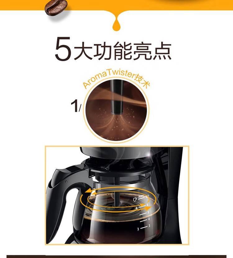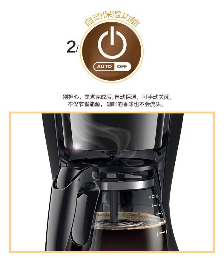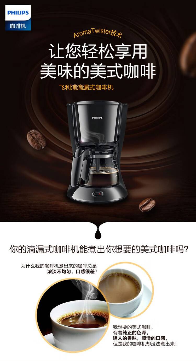 飞利浦(PHILIPS) 咖啡机家用滴漏美式 煮咖啡机小咖啡壶 HD7432/20
