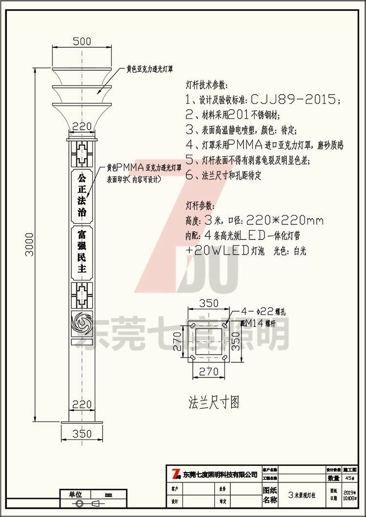 定制3-5米方形广场景观灯柱 新中式LED公园景观庭院灯-七度照明