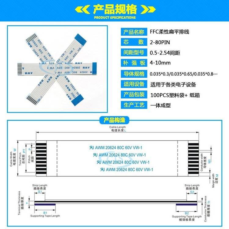 纺织机2P排 线 纺 织机织带机专用线材经编机贾卡梳FFC排线厂家供应