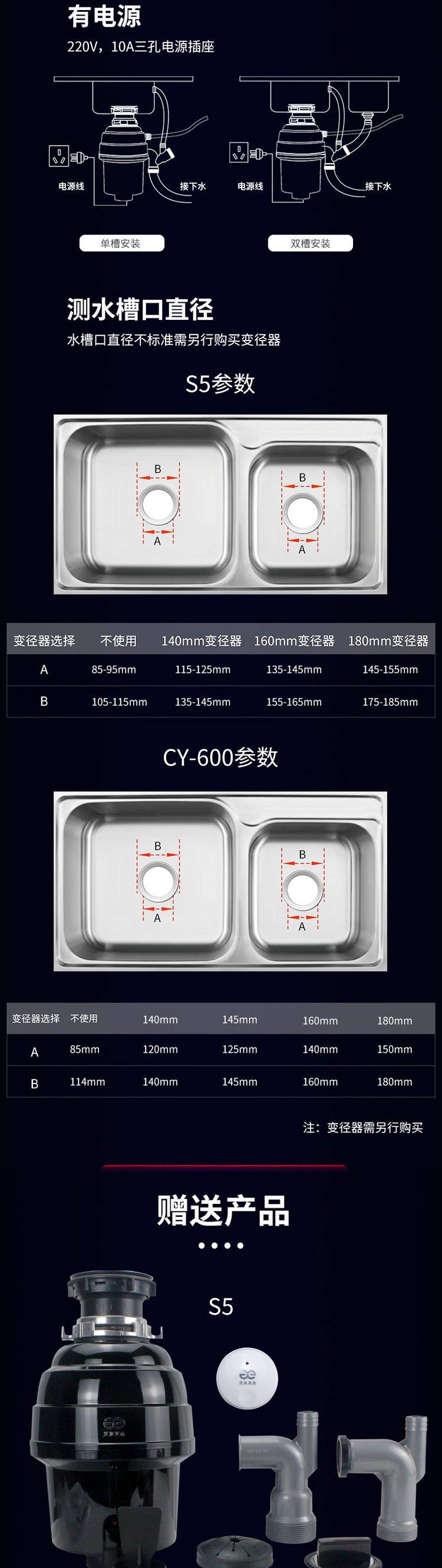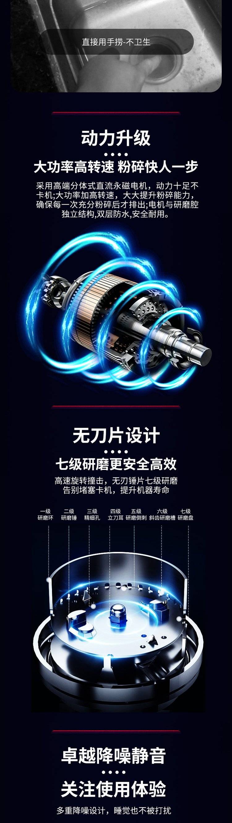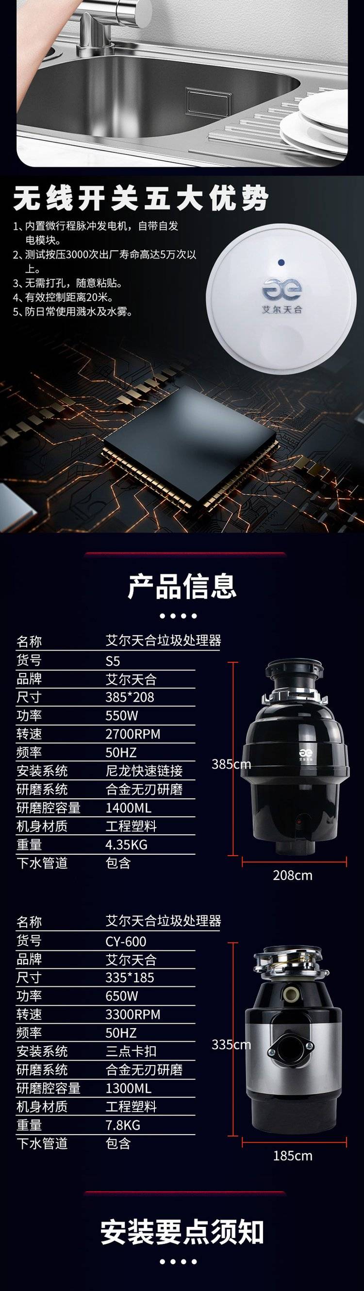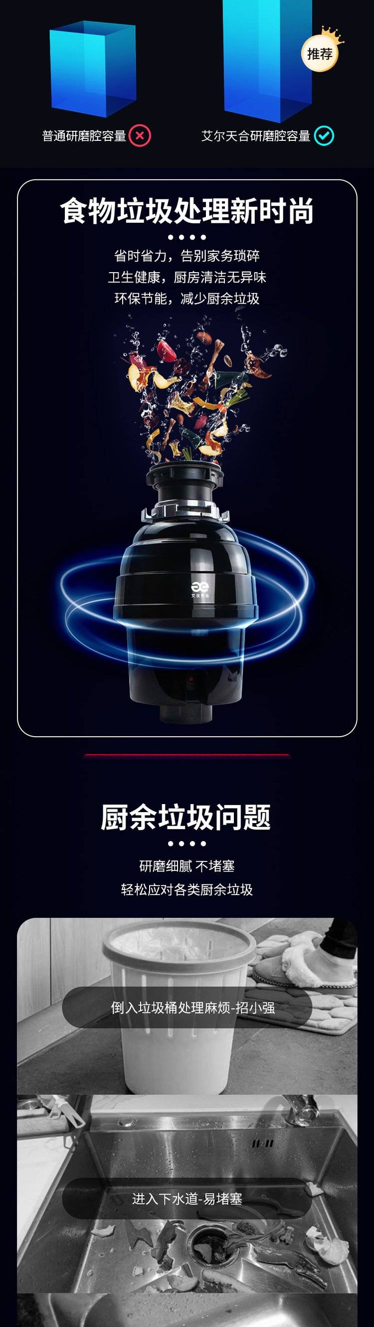 艾尔天合 垃圾处理器家用厨房食物垃圾处理机 厨余粉碎机
