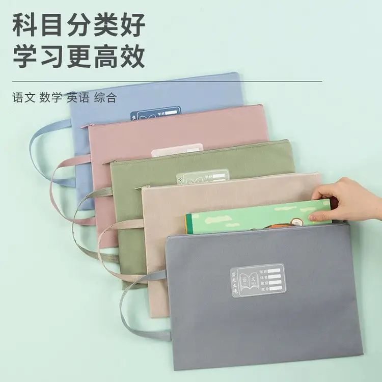 文件袋a4莫兰迪文件袋防水手提拉链资料袋科目分类收纳袋定制logo
