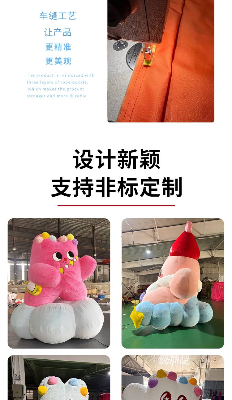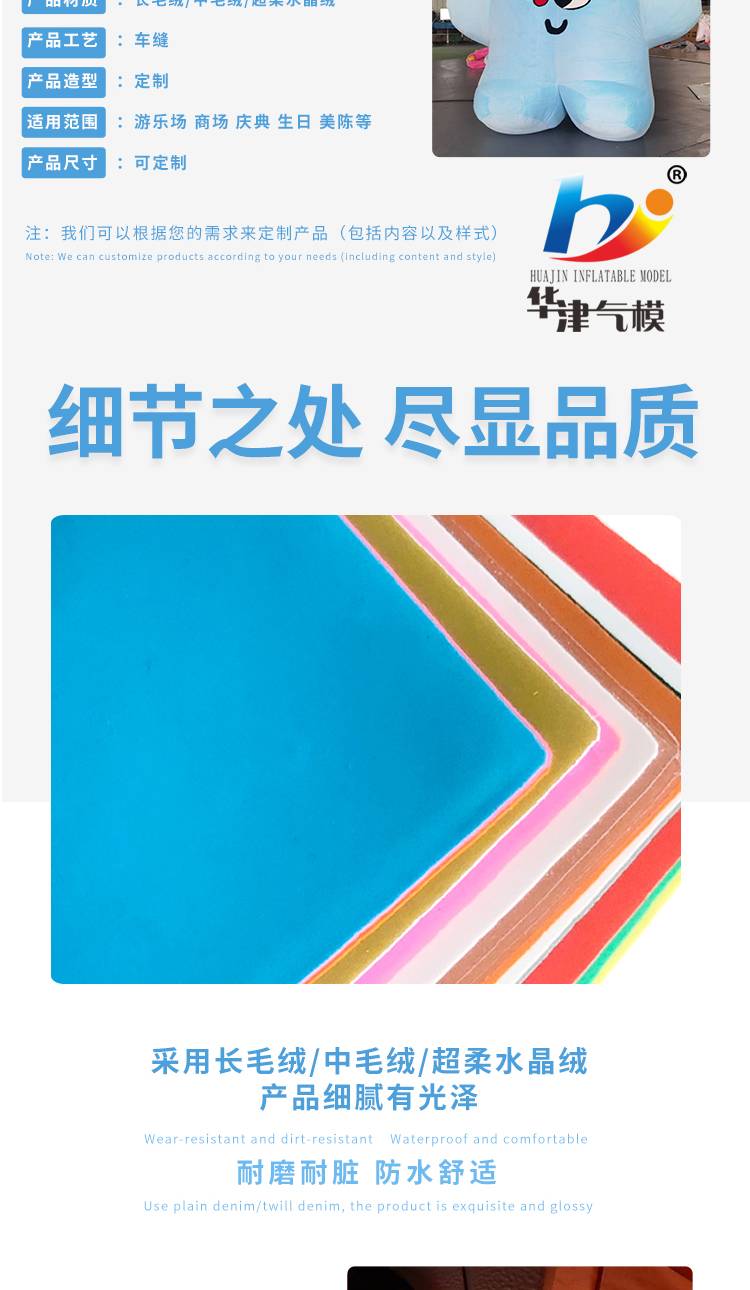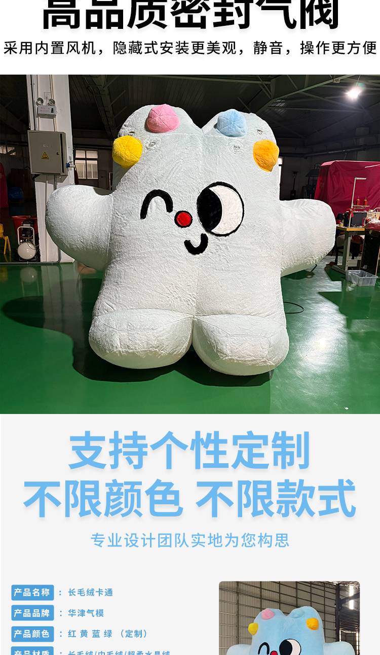 长毛绒卡通气模 充气毛绒公仔定制 商场美陈装饰