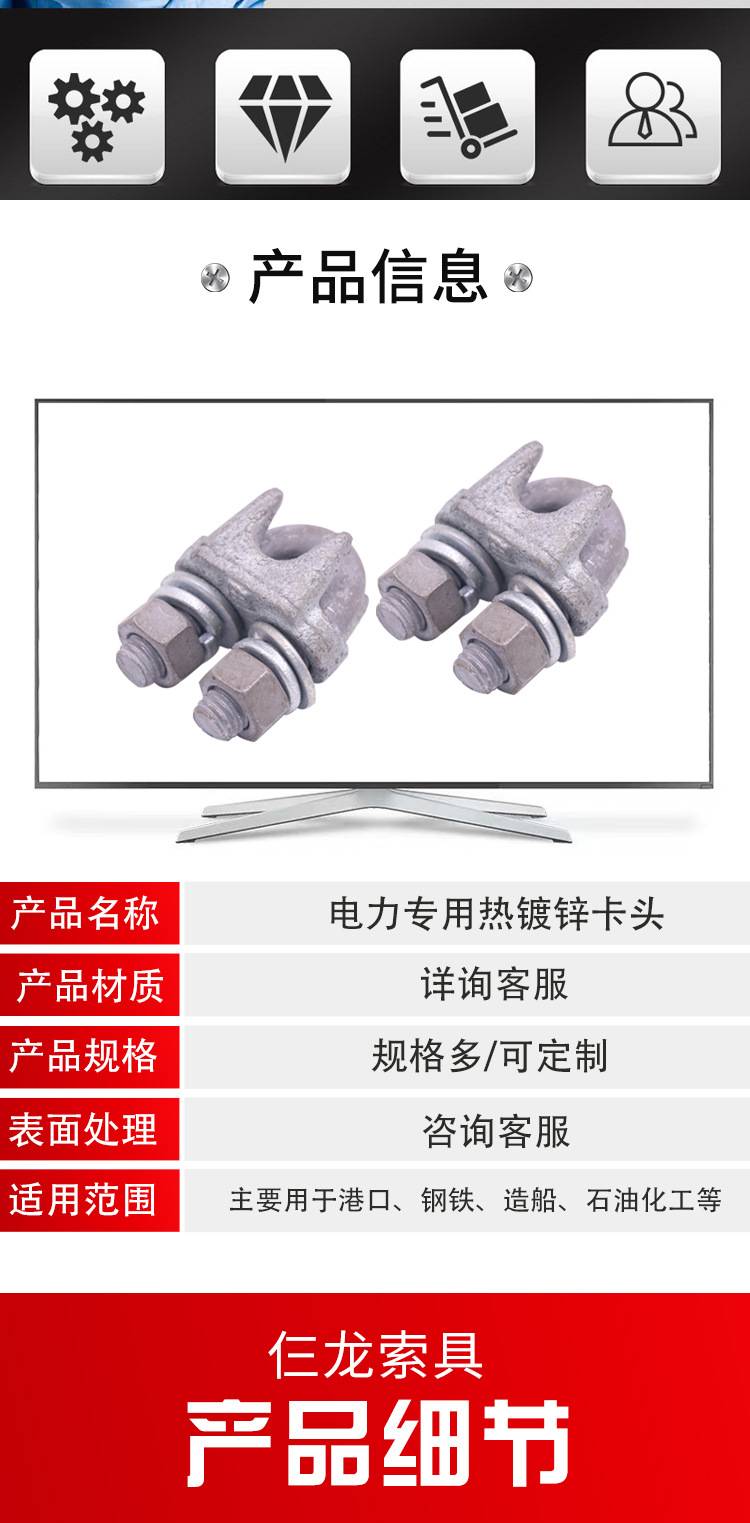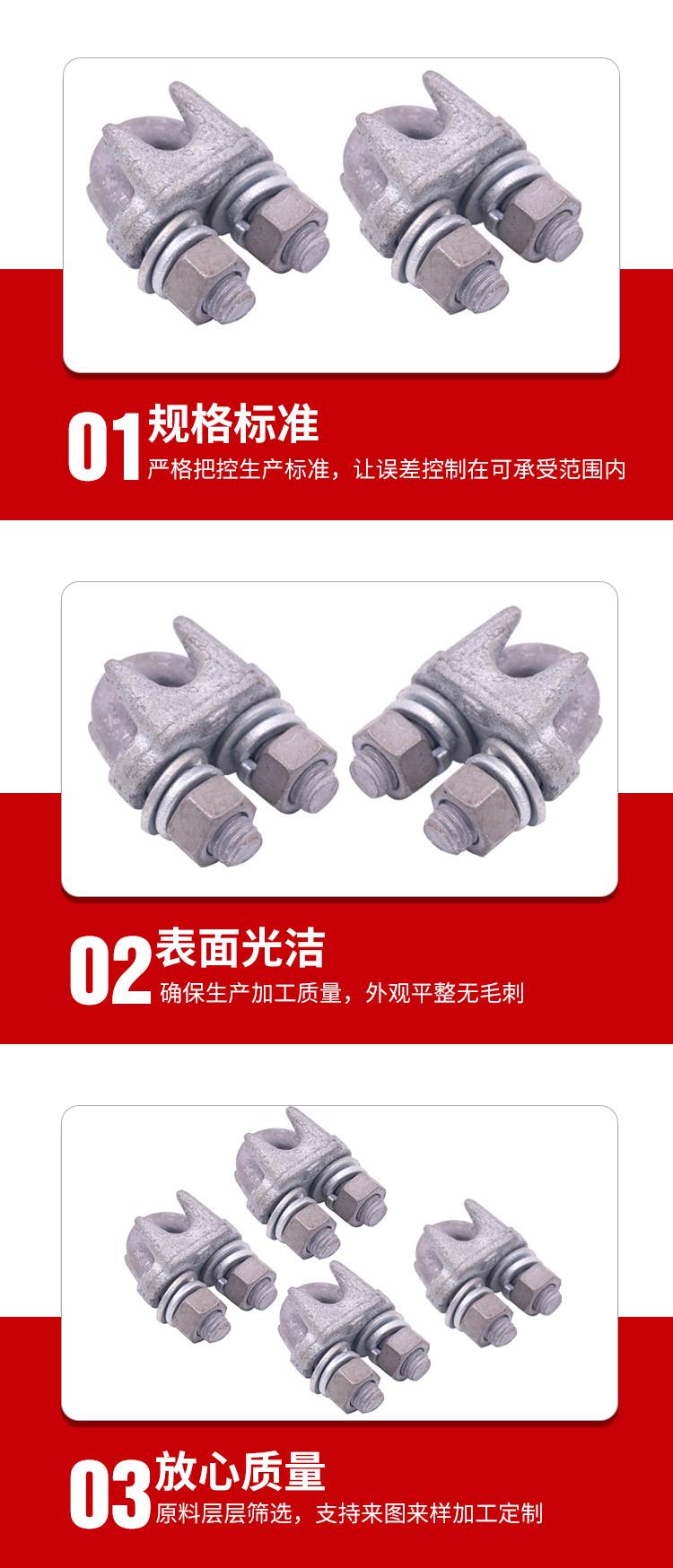 电力专用热镀锌卡头 国标电缆钢丝绳夹头JK夹子 仨龙