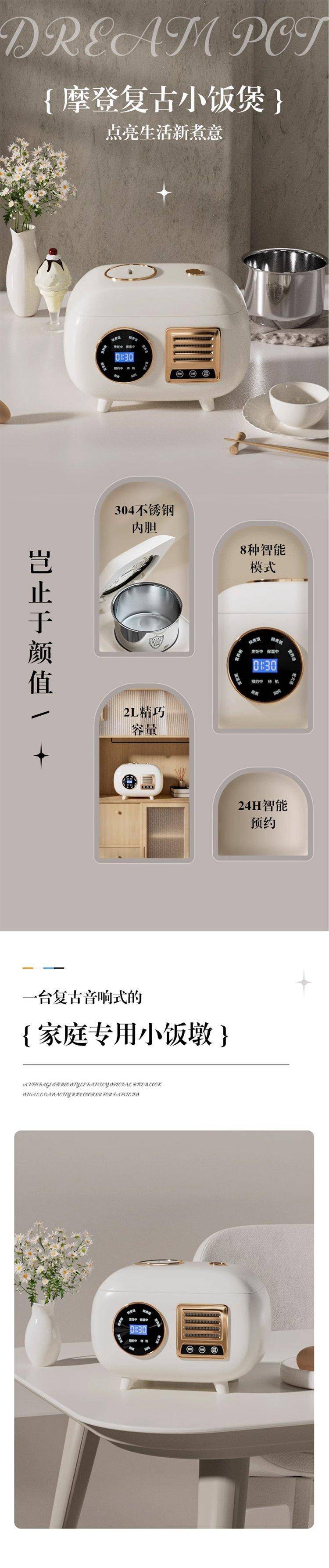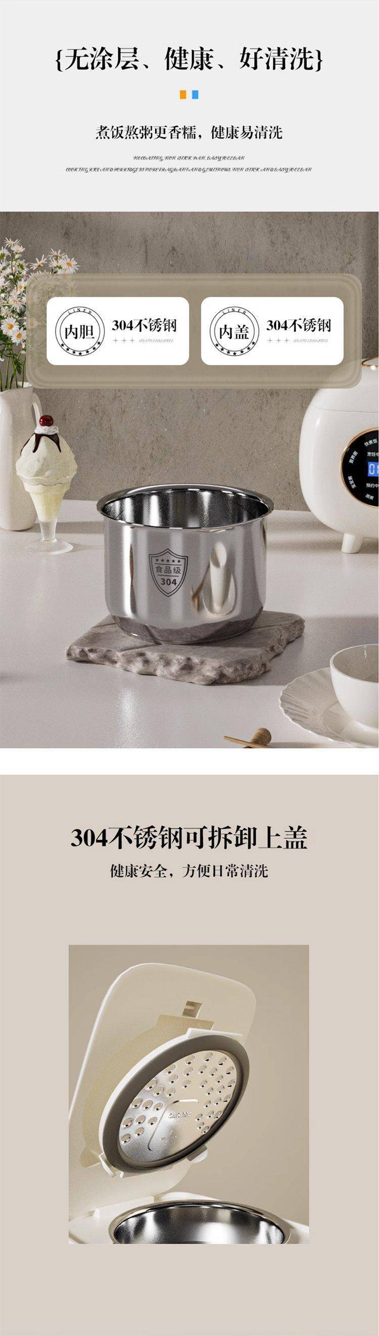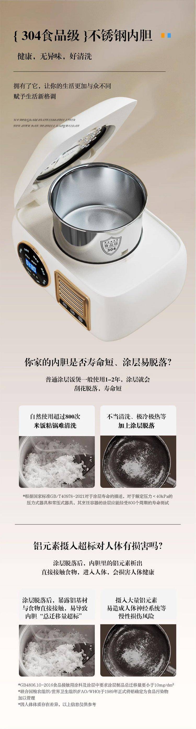 德国品牌麦滋电饭煲无涂层电饭锅0涂层小型304不锈钢预约迷你2L升