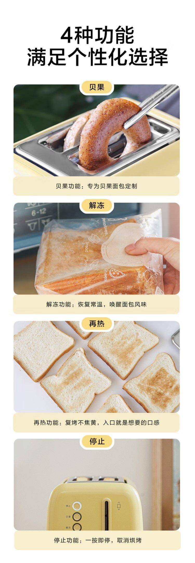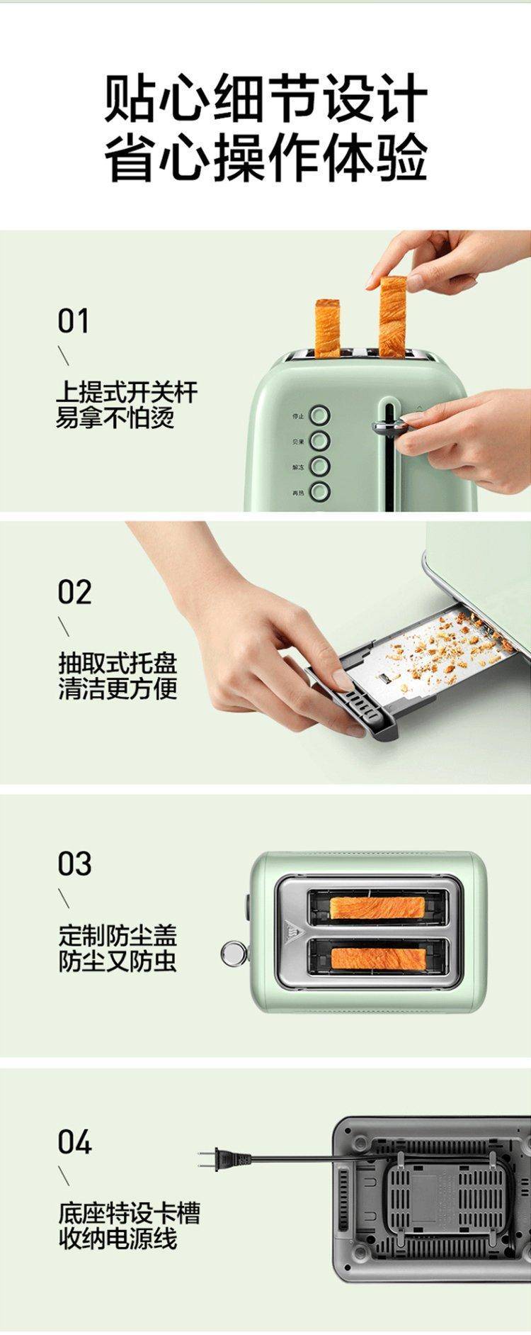 多功能面包机多士炉D712 宽槽设计7档口感 双色烤色随心选