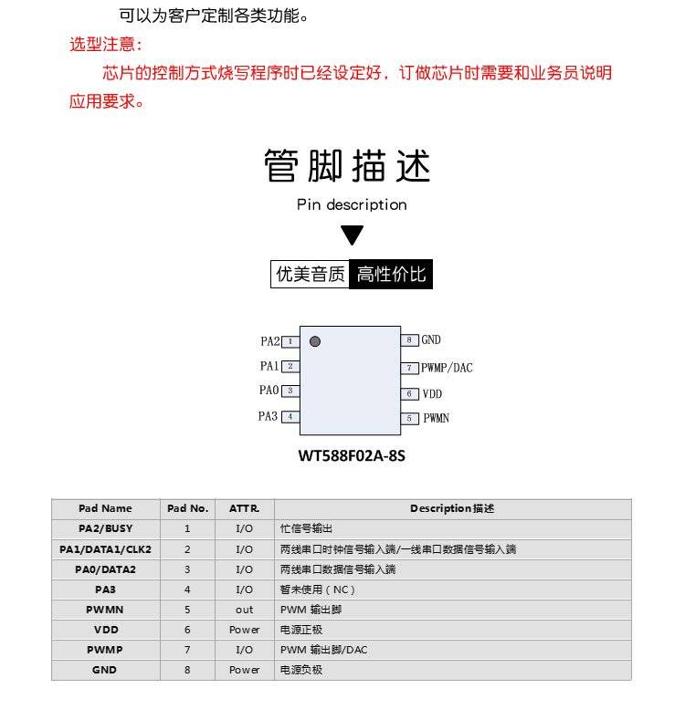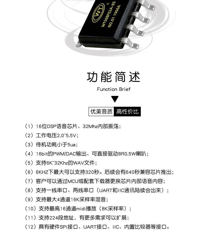 唯创知音 电动车语音提示芯片 蛋糕盒音乐芯片 WT588F02B-8S