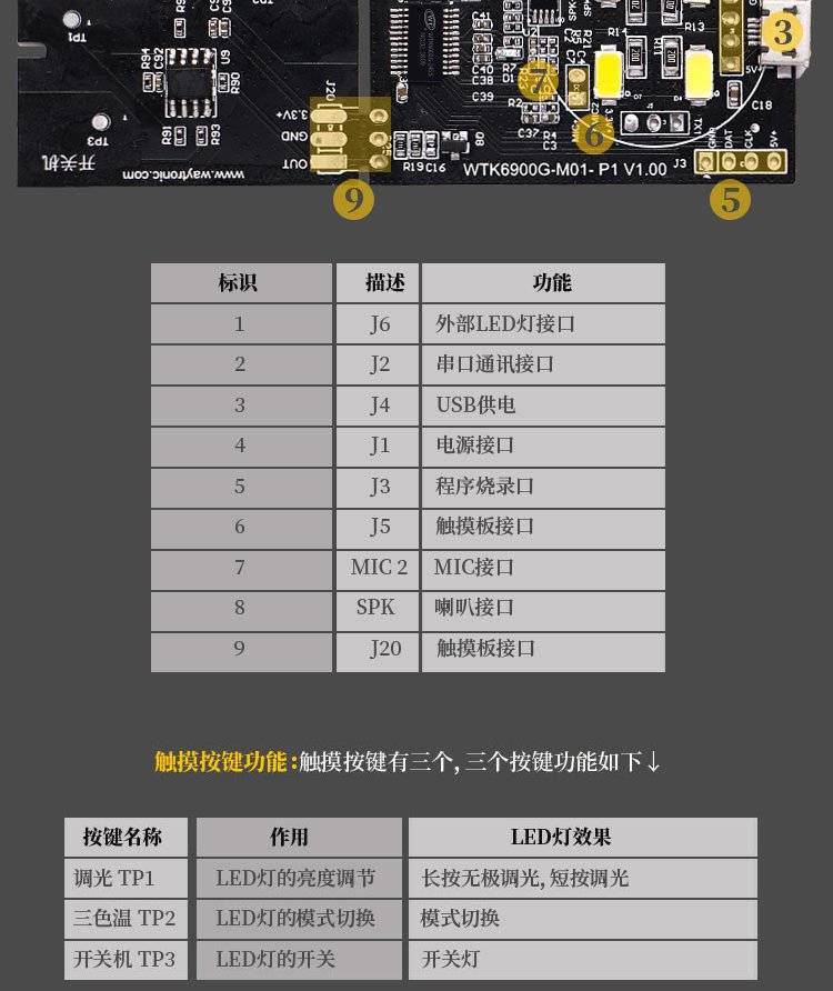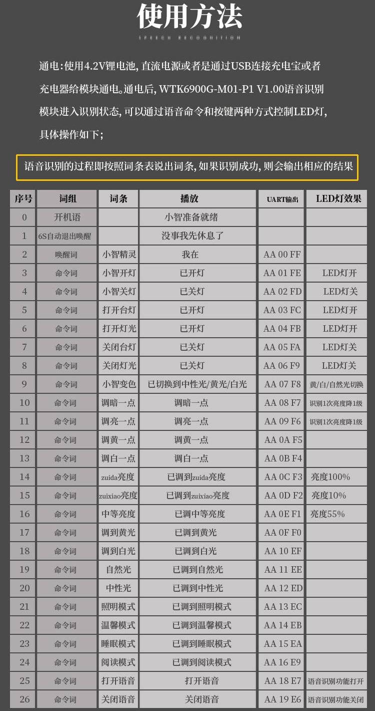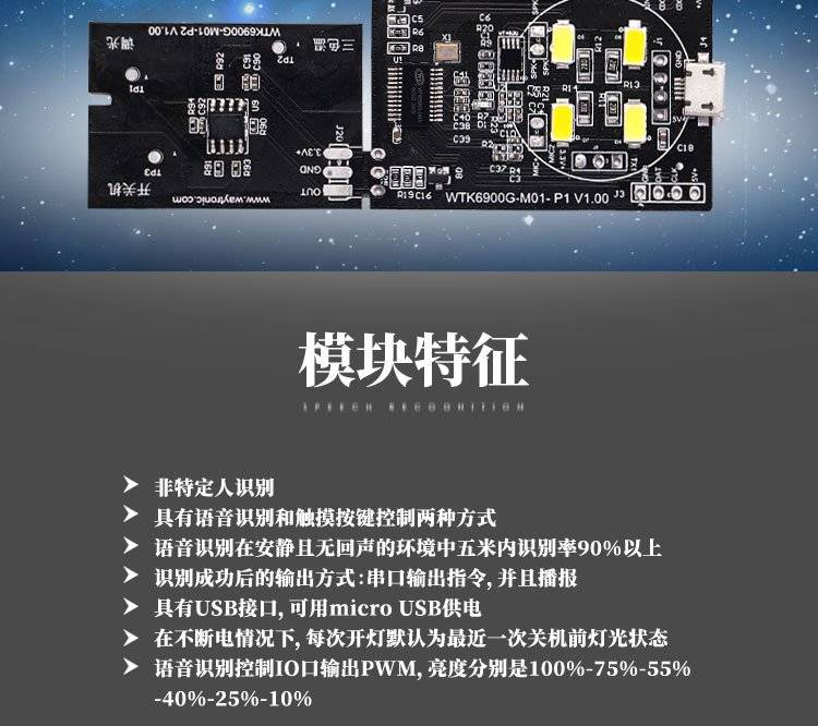 唯创知音 WTK6900-M01 离线中英文 小夜灯 小家电语音识别模块