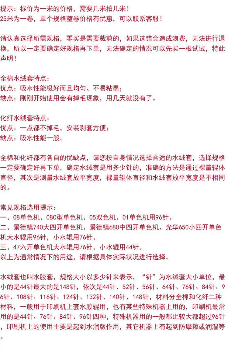 水绒套 胶印水胶套 化纤全棉进口水绒套