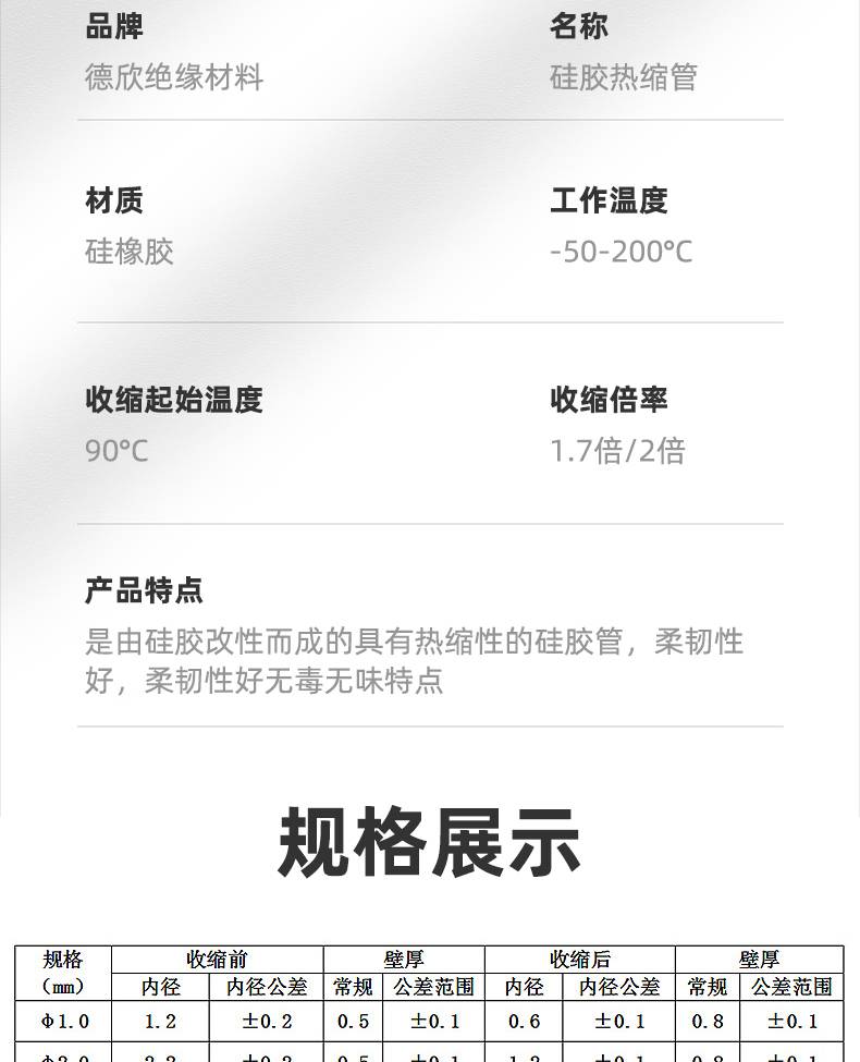 德欣硅胶热缩管 柔软耐弯折 电子电器元件绝缘保护 标准化生产流程
