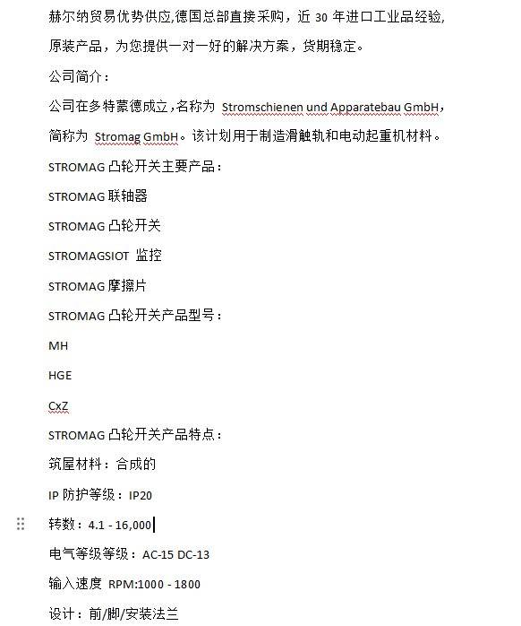 代理德国STROMAG凸轮开关CxZ 联轴器 摩擦片用于制造滑触轨