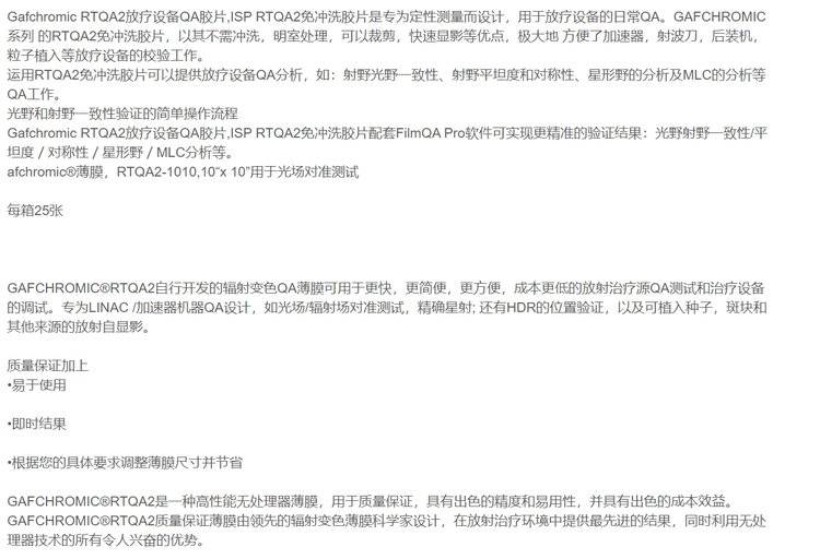 Gafchromic RTQA2放疗设备QA胶片 美国ISP免冲洗