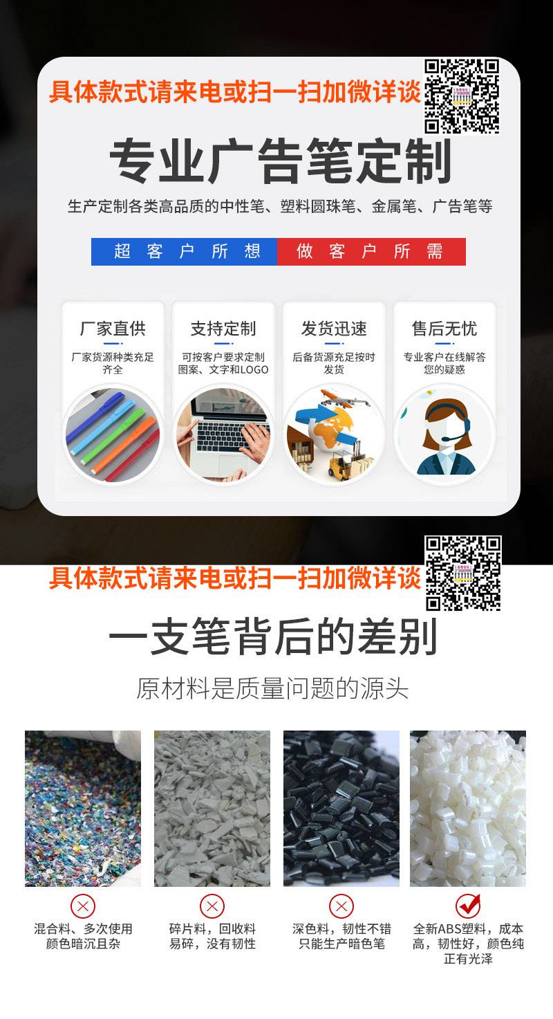 定制圆珠笔 签字笔 书写流畅进口笔芯 印字印品牌宣传用中性笔