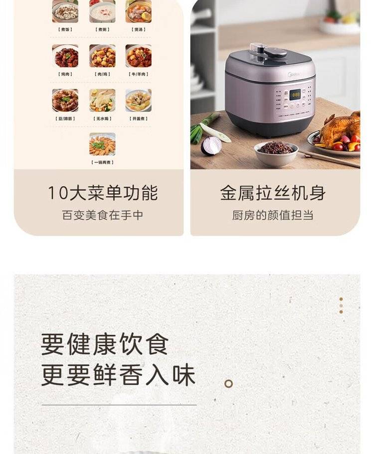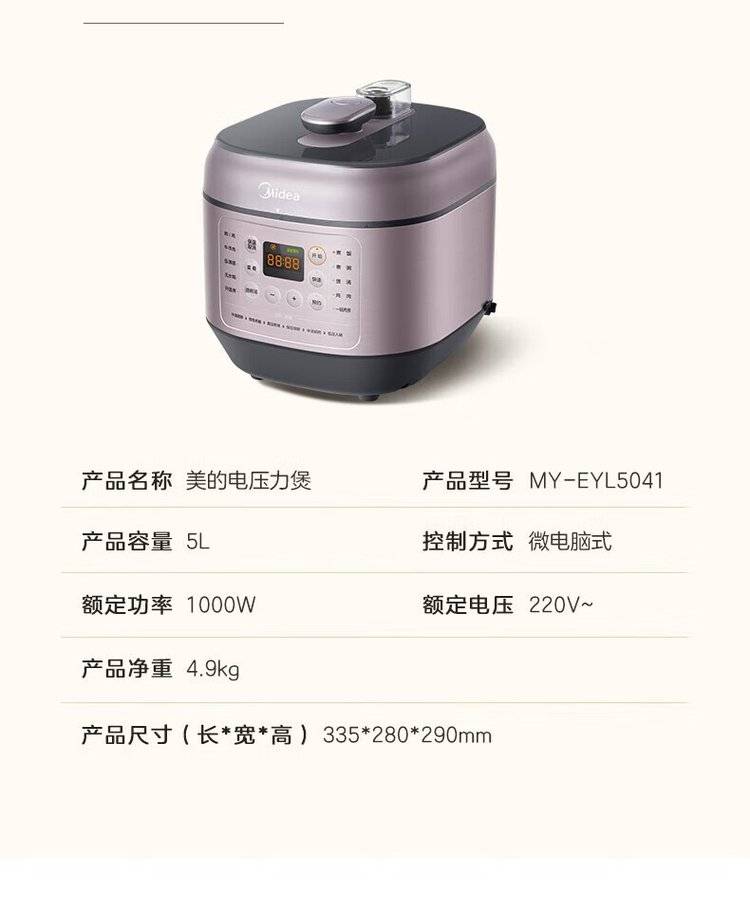 美的 电压力锅 EYL5041 家用智能双胆5L大容量预约定时多功能高压锅