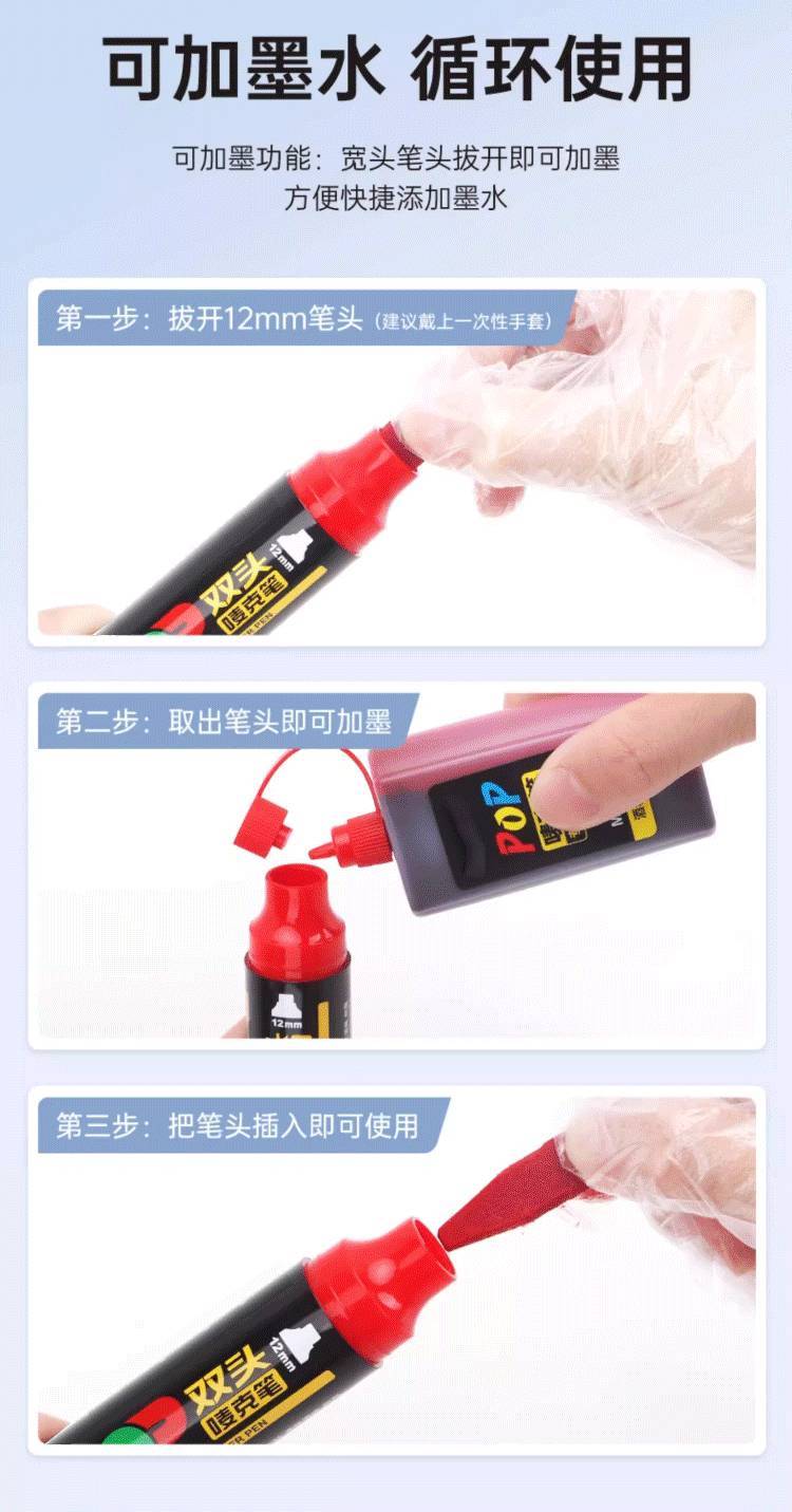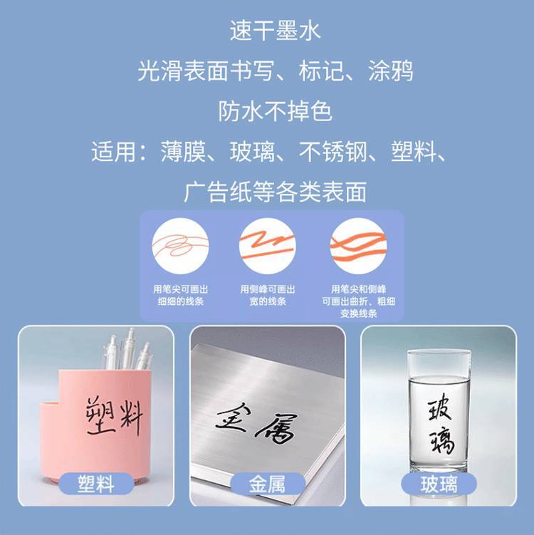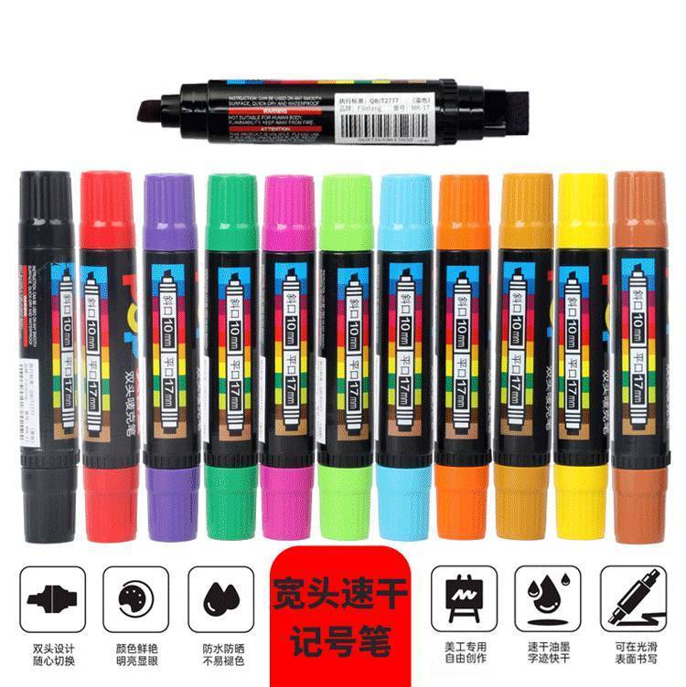 Filolang费洛朗POP双头唛克笔手绘广告笔海报笔马克笔可加墨水海报专用笔薄膜玻璃金属工业用速干记号笔