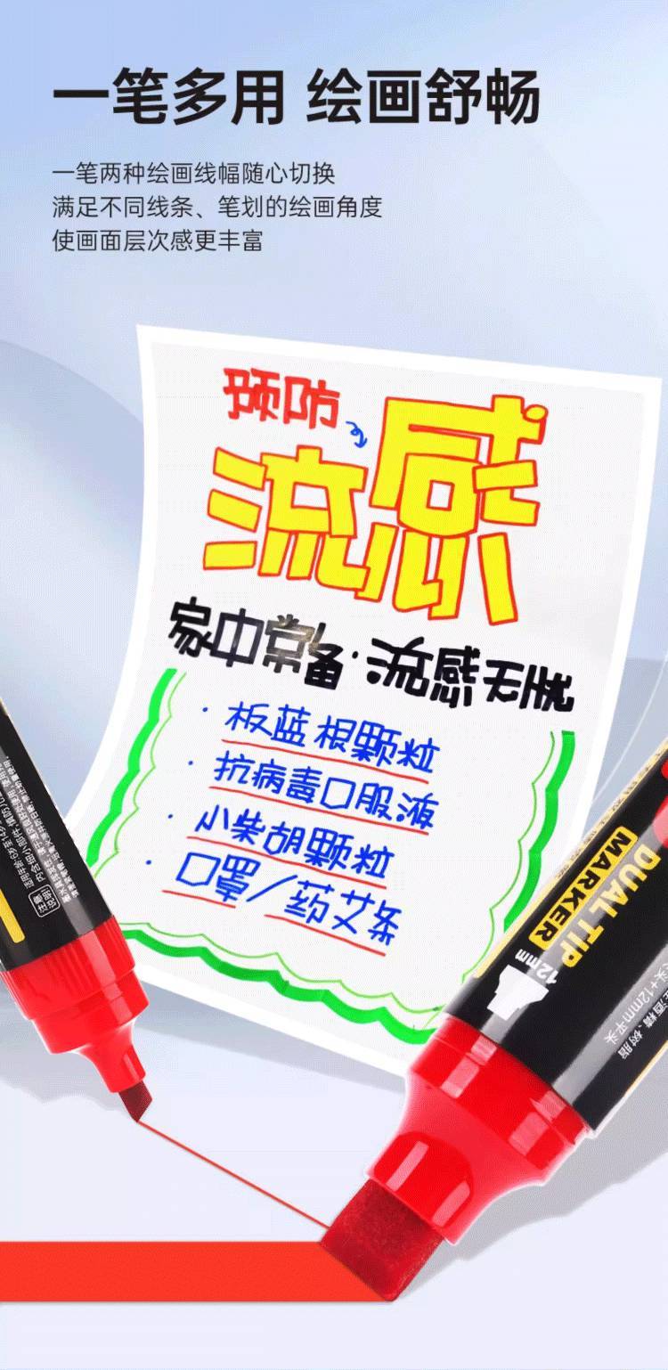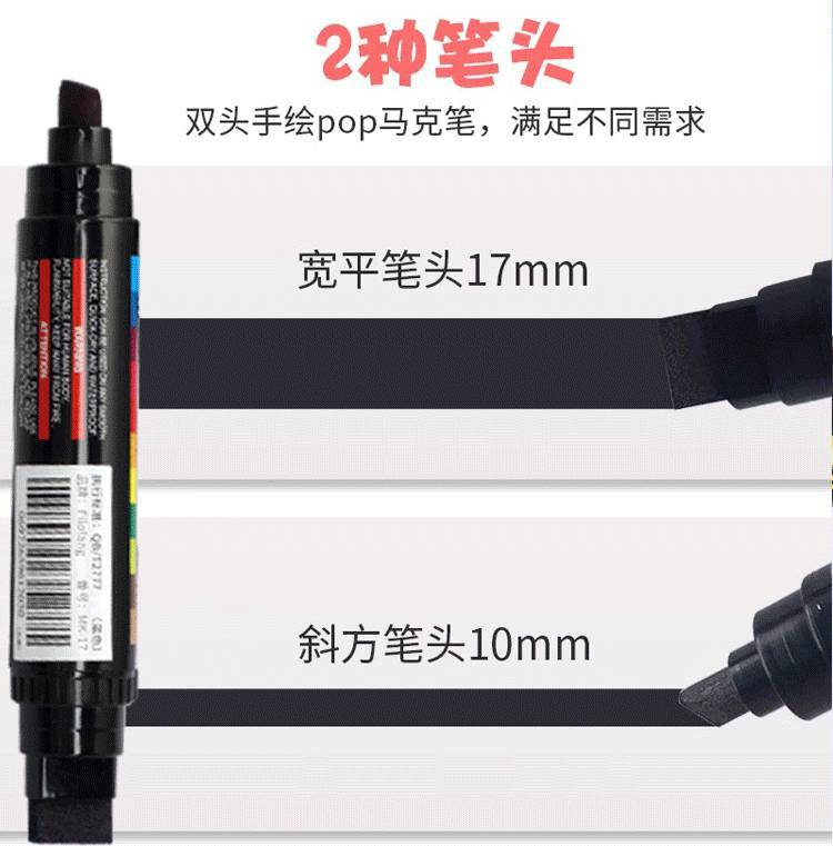 Filolang费洛朗POP双头唛克笔手绘广告笔海报笔马克笔可加墨水海报专用笔薄膜玻璃金属工业用速干记号笔