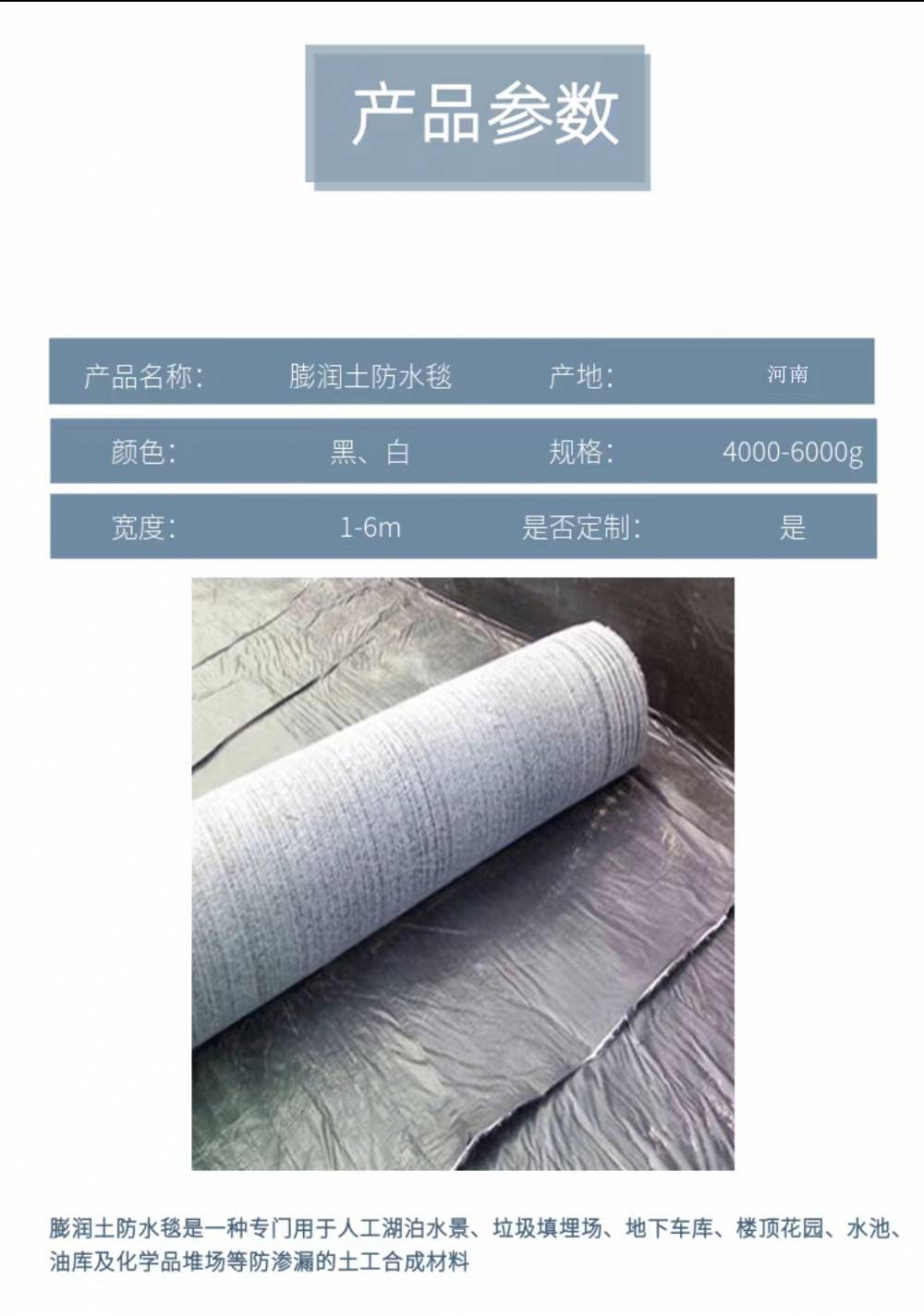 人工湖蓄水池 覆膜钠基膨润土防水毯 防渗防水工程优选材料