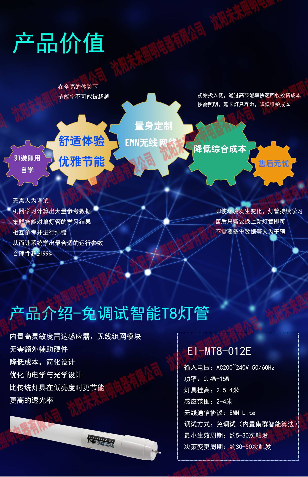 物联网灯管 免调试智慧照明雷达感应灯管T8LED车库办公室