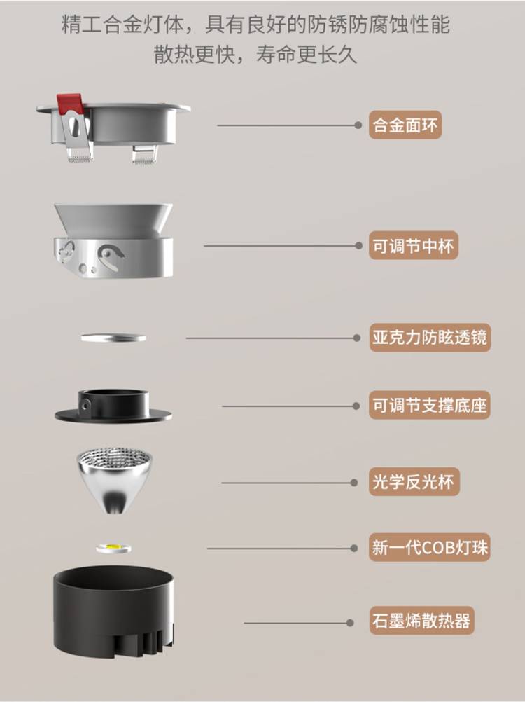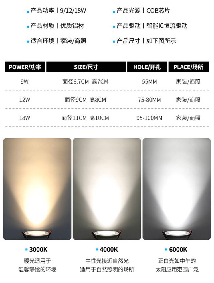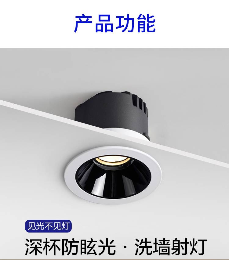 射灯led天花灯嵌入式COB7.5公分家用筒灯12W商用防眩光酒店洗墙灯