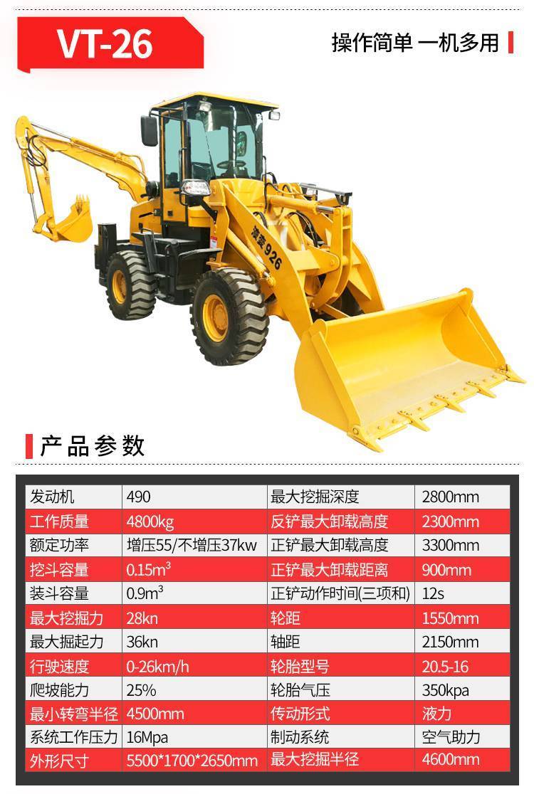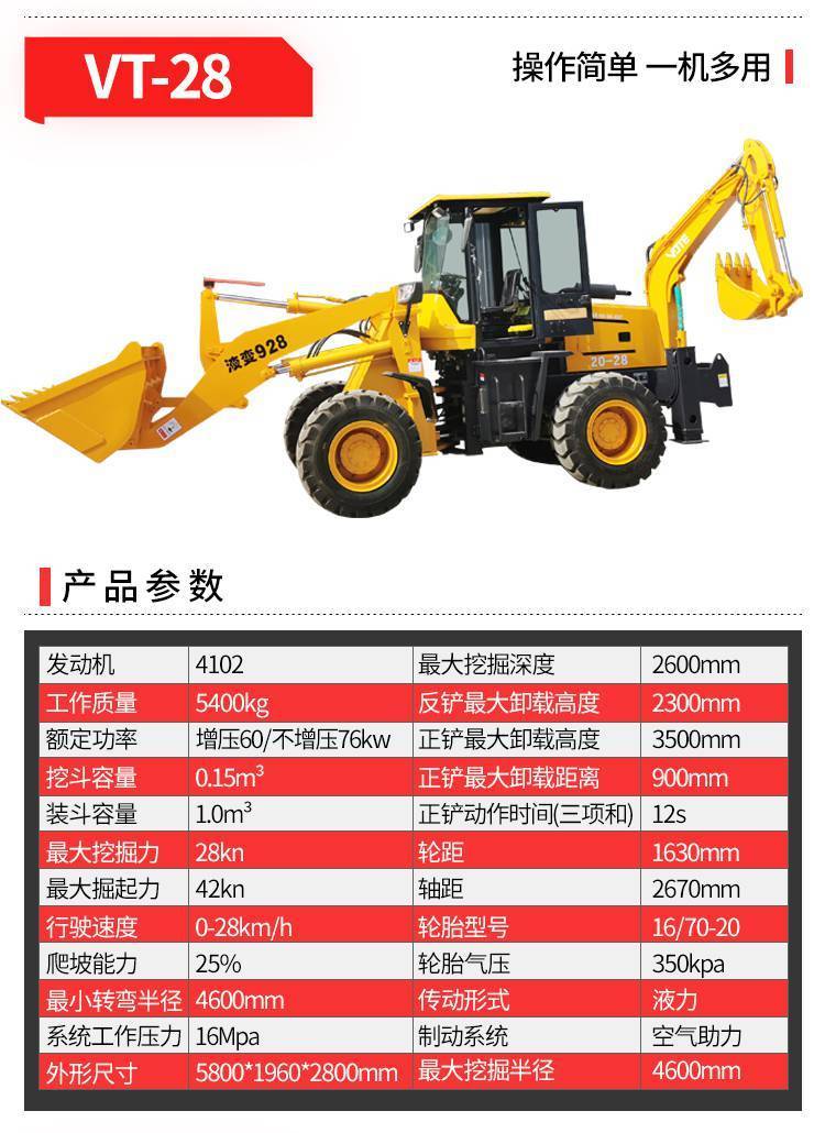 一机多用两头忙挖掘装载一体机液压挖掘装载机VOTE
