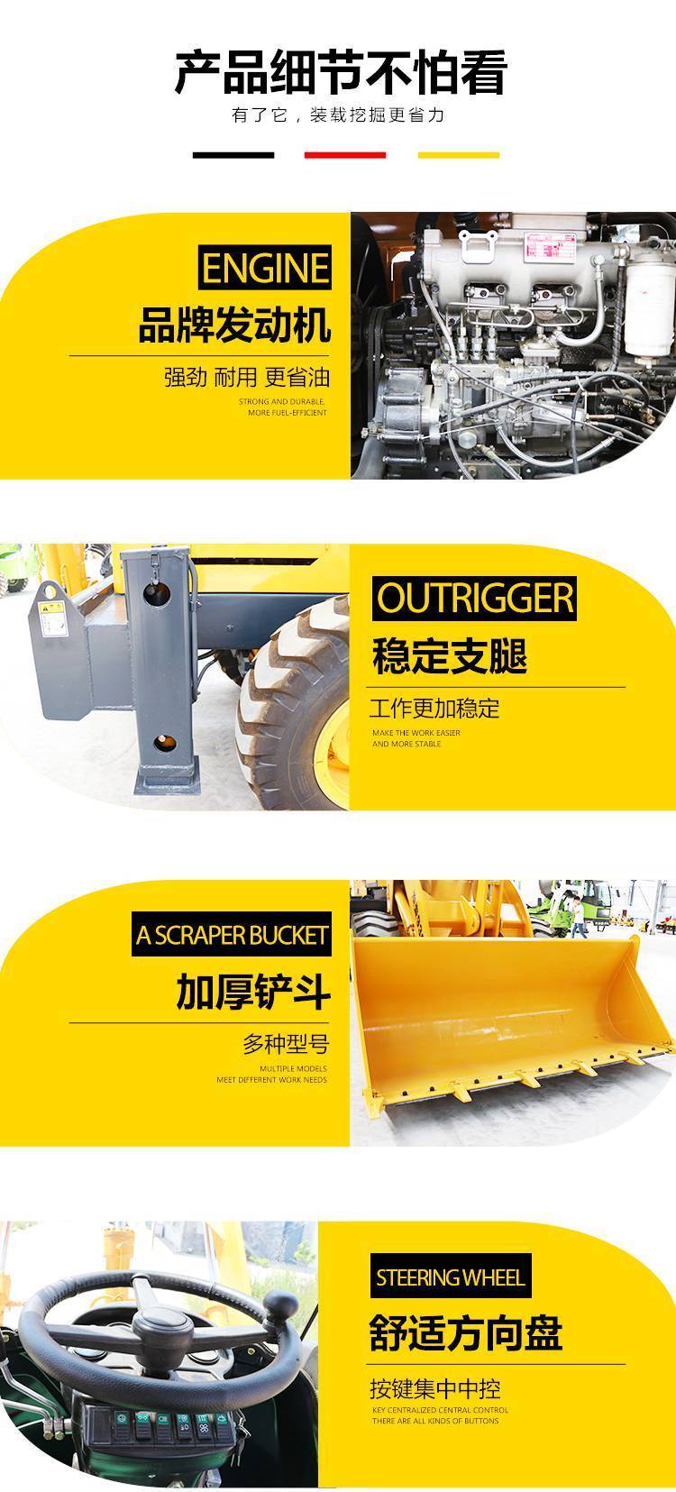 20型装载机轮式四驱940铲车加高臂装粮抓草机抓木机推土机