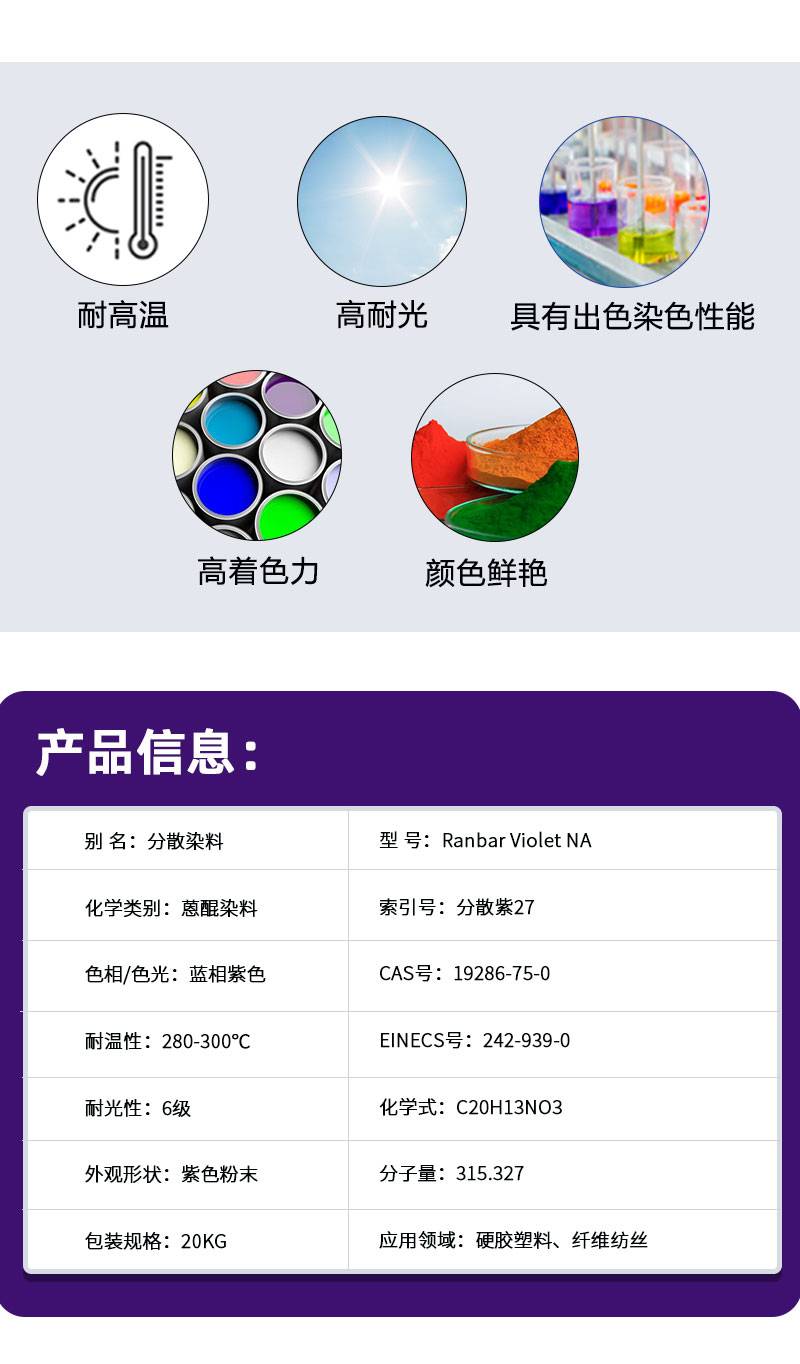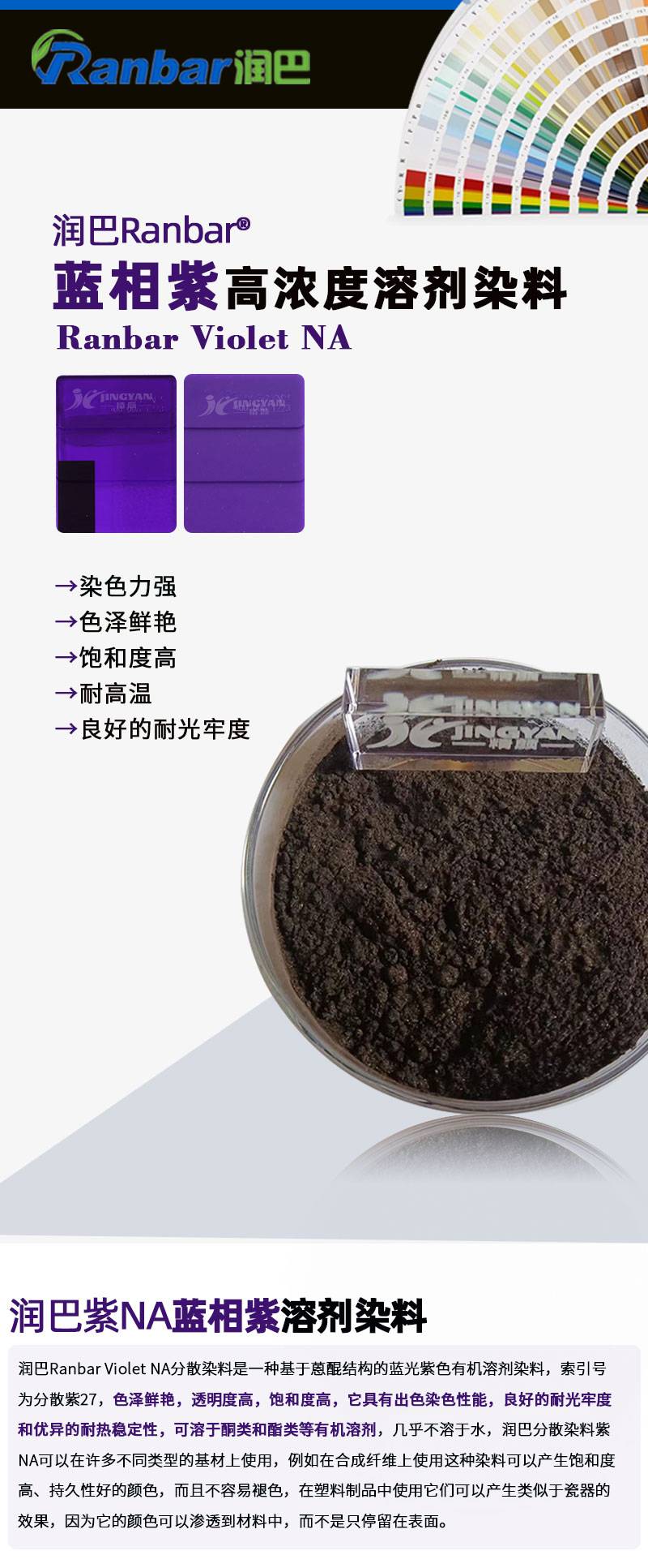 2222润巴耐高温蒽醌类溶剂染料蓝相紫NA塑料用分散紫27分散染料
