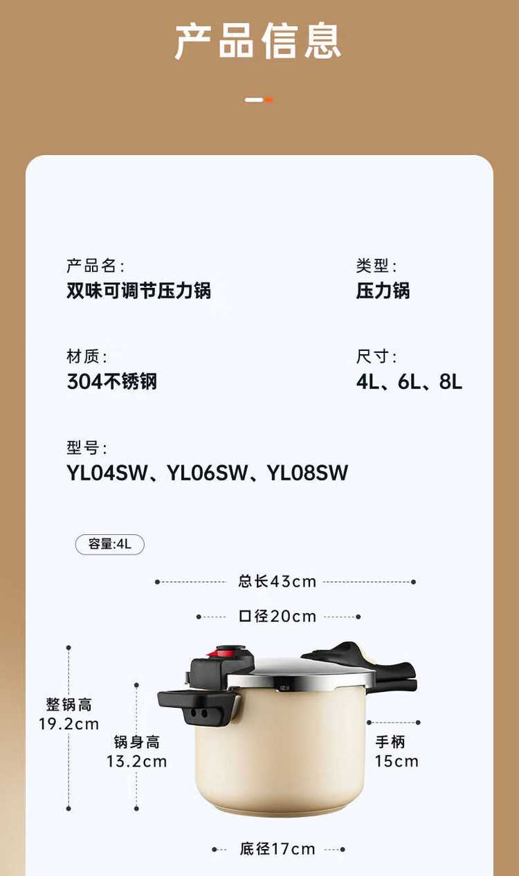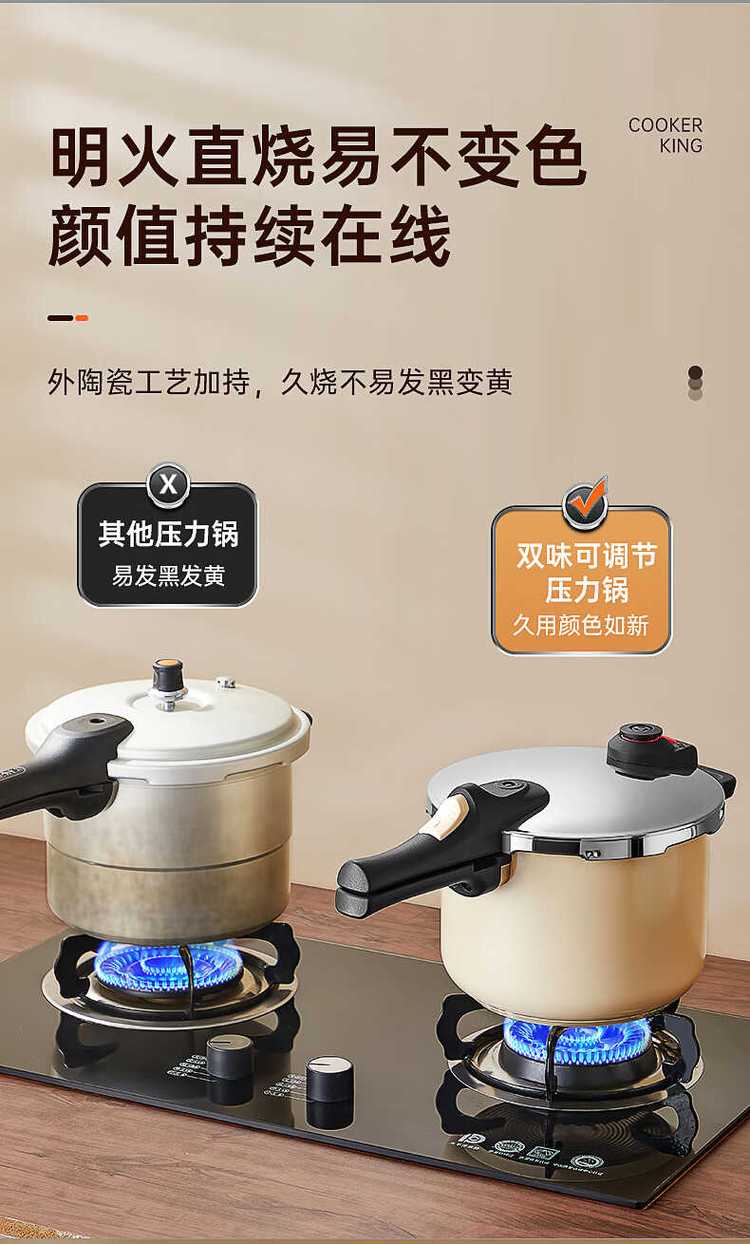 炊大皇 双味可调节压力锅 YL06SW 304不锈钢加厚高压锅燃气灶通用
