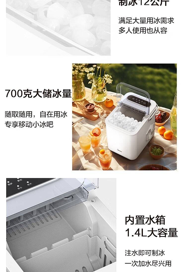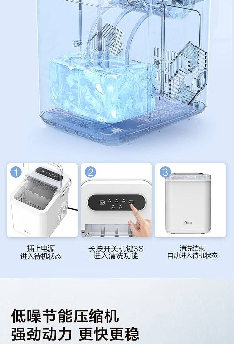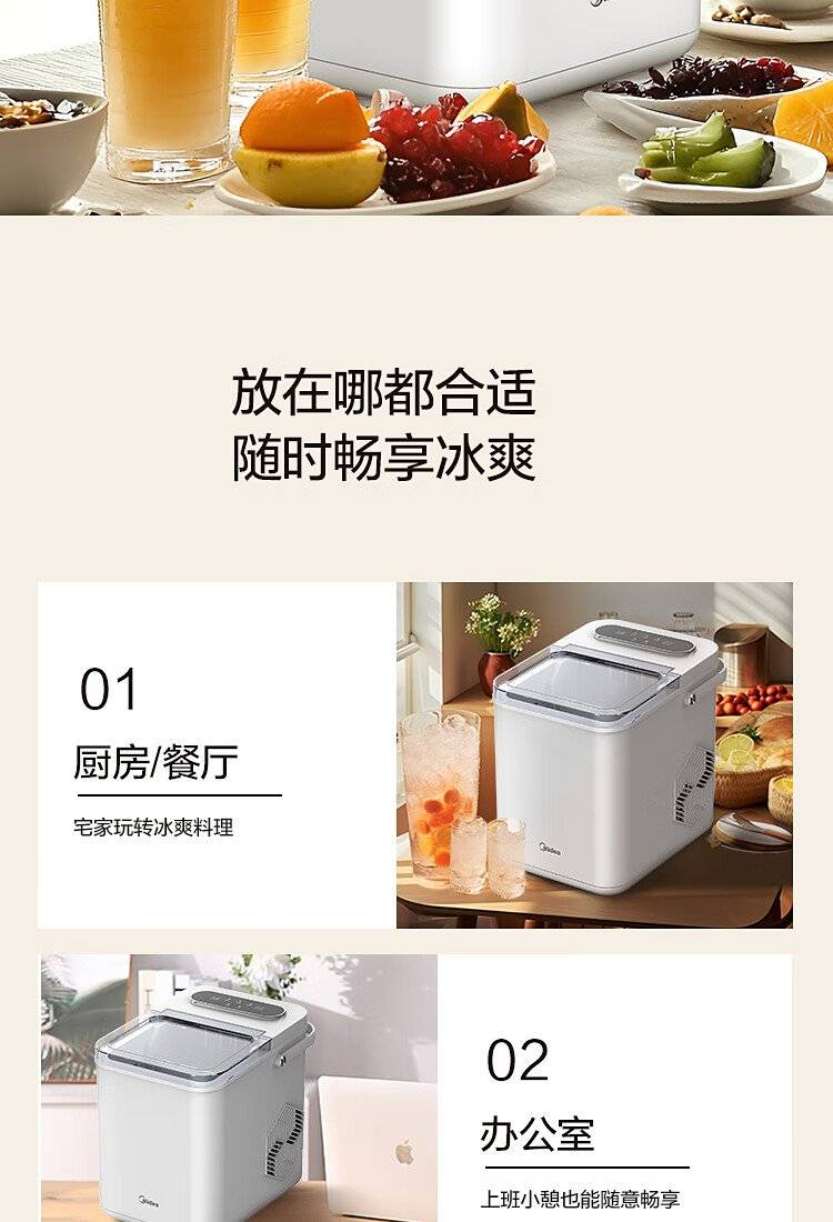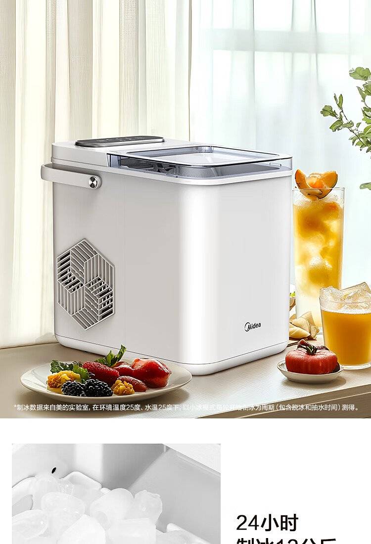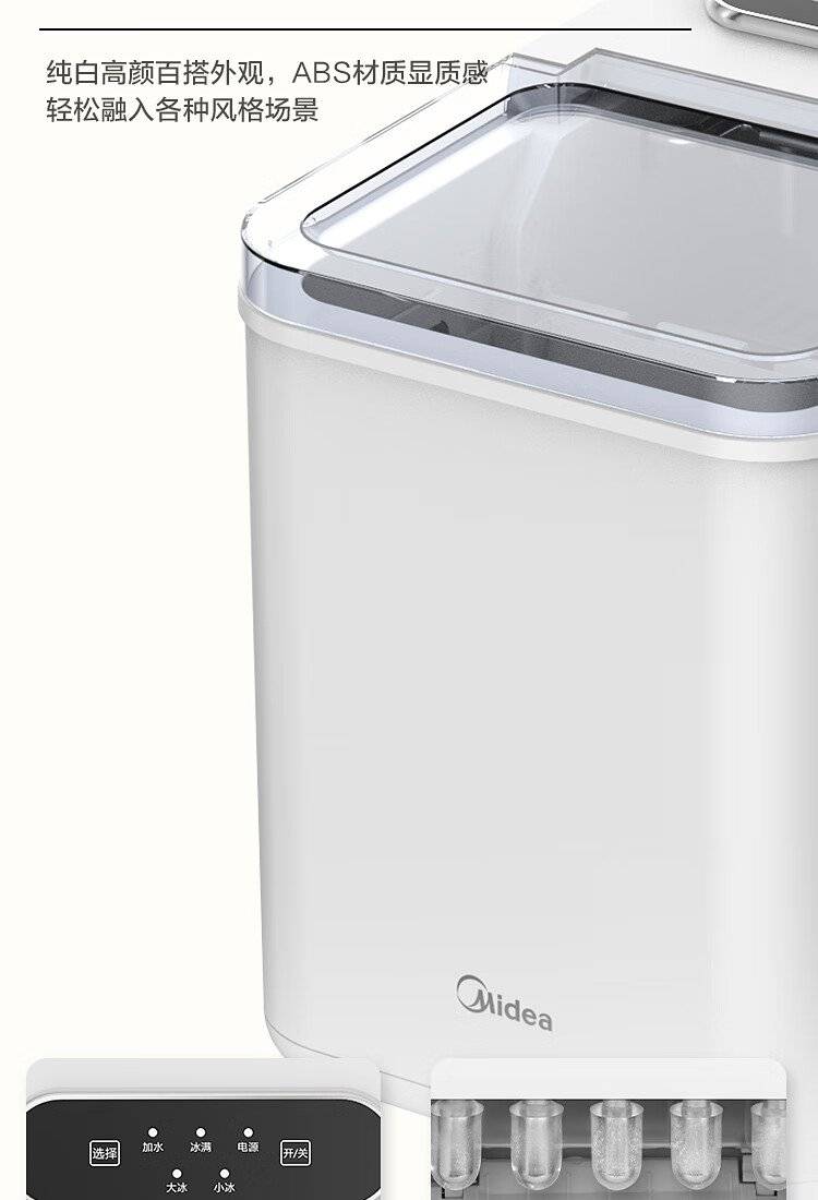 美的 制冰机 MBJ-12D17E 家用办公迷你小型冰块机自清洗厨房小家电