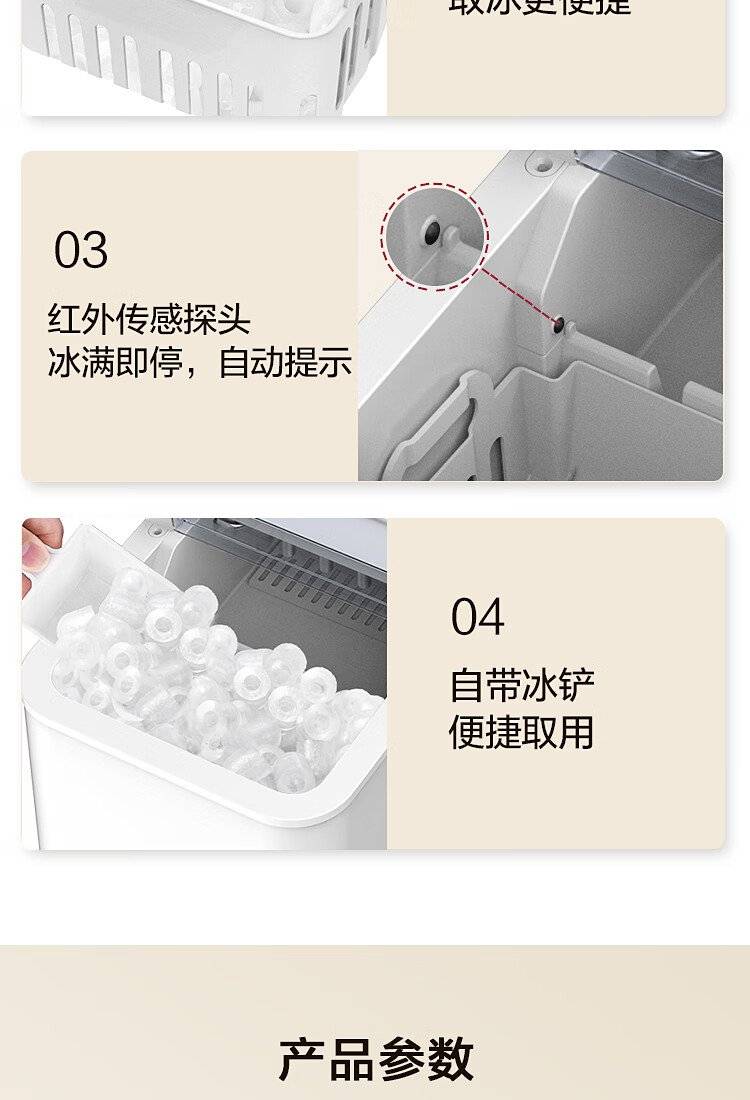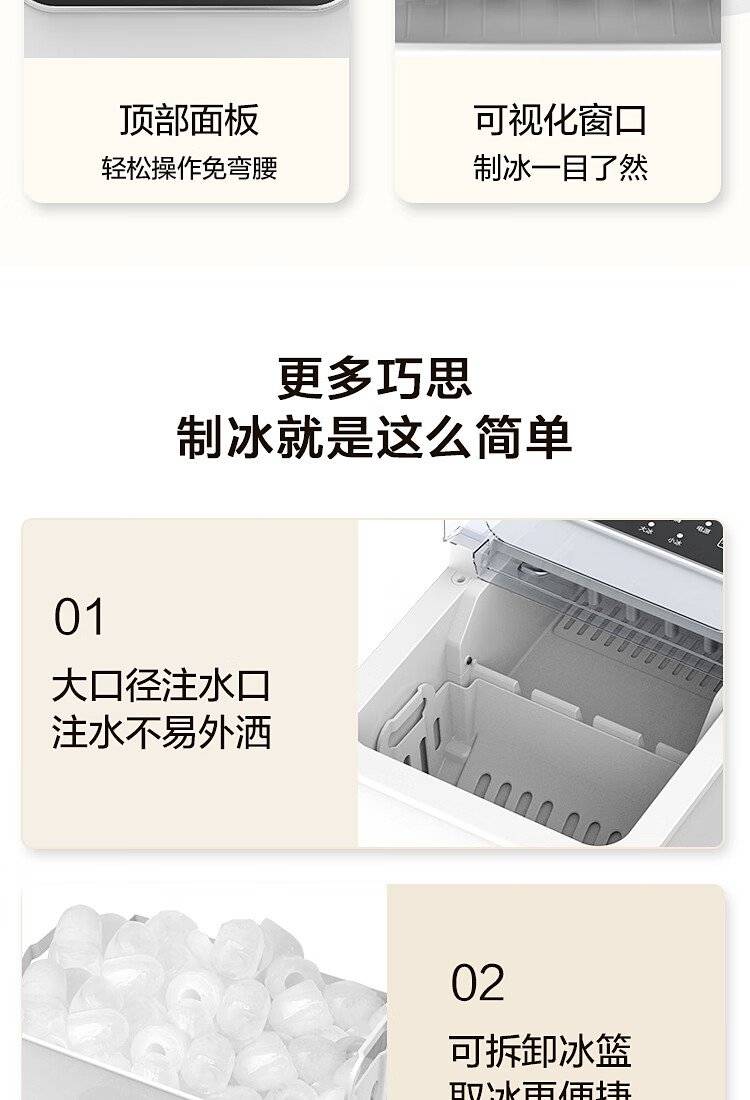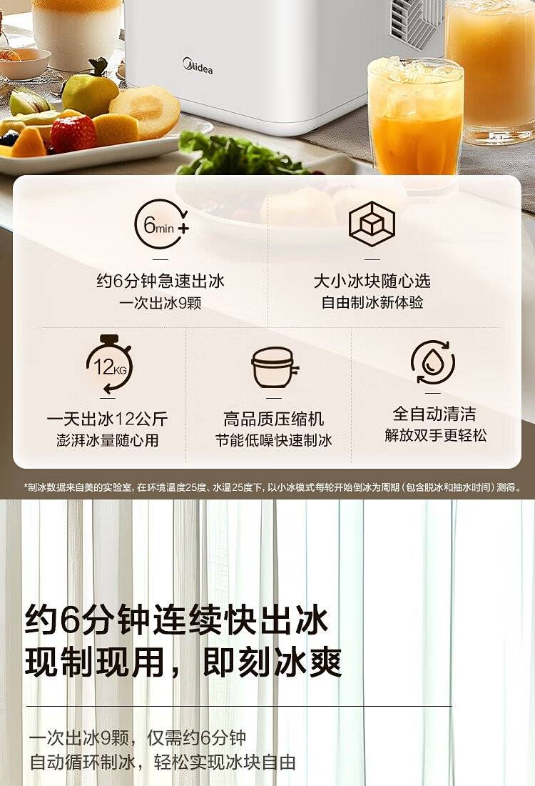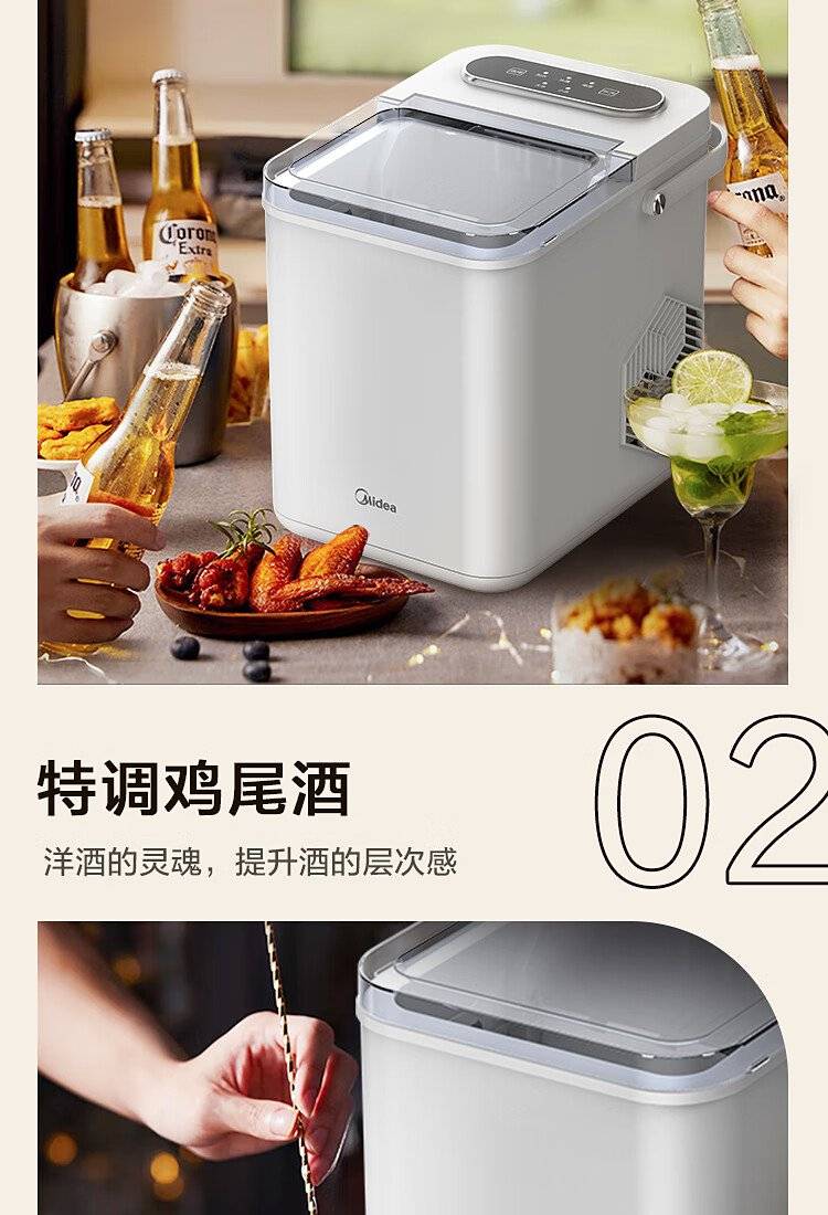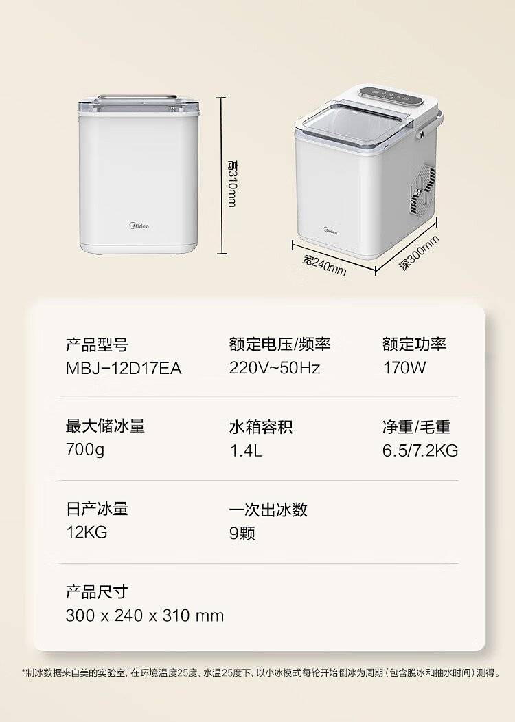 美的 制冰机 MBJ-12D17E 家用办公迷你小型冰块机自清洗厨房小家电
