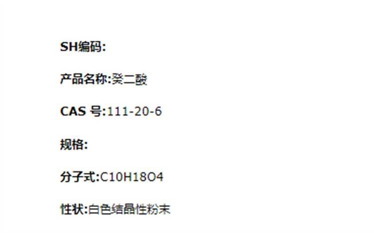 癸二酸 化学试剂大包装 润滑油 耐寒增塑剂 厂家供应