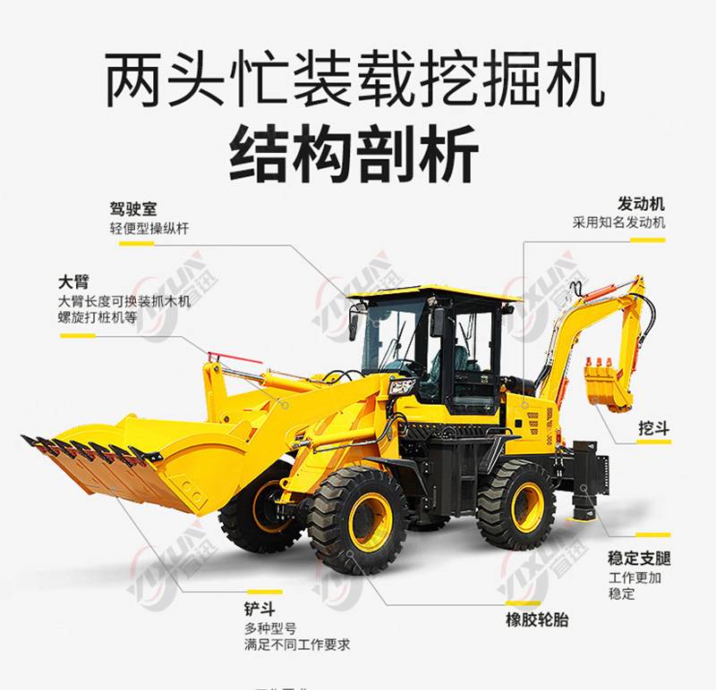 两头忙挖掘装载机 铲挖两用一体机 四驱轮式挖掘机铲车 支持定制