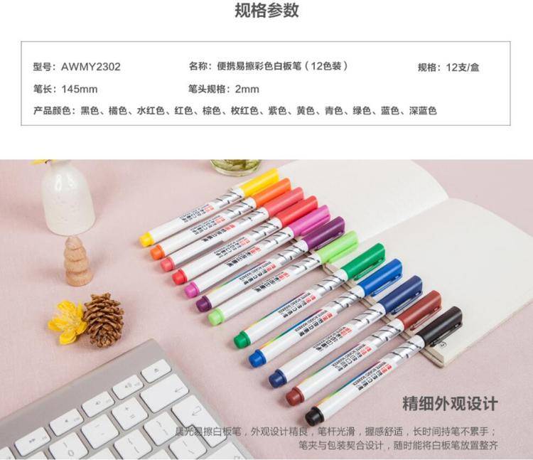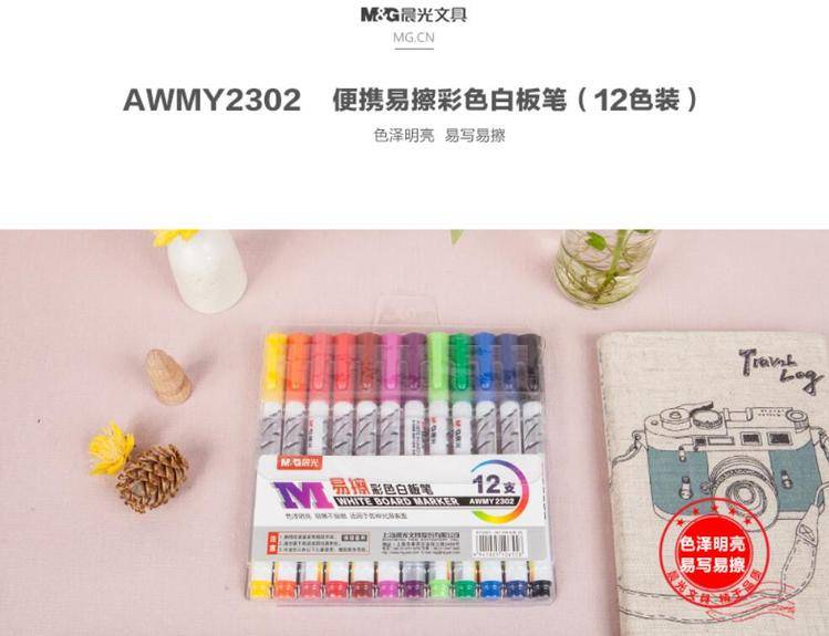 晨光便携易擦彩色白板笔(12色)AWMY2302 轻松书写 多彩办公