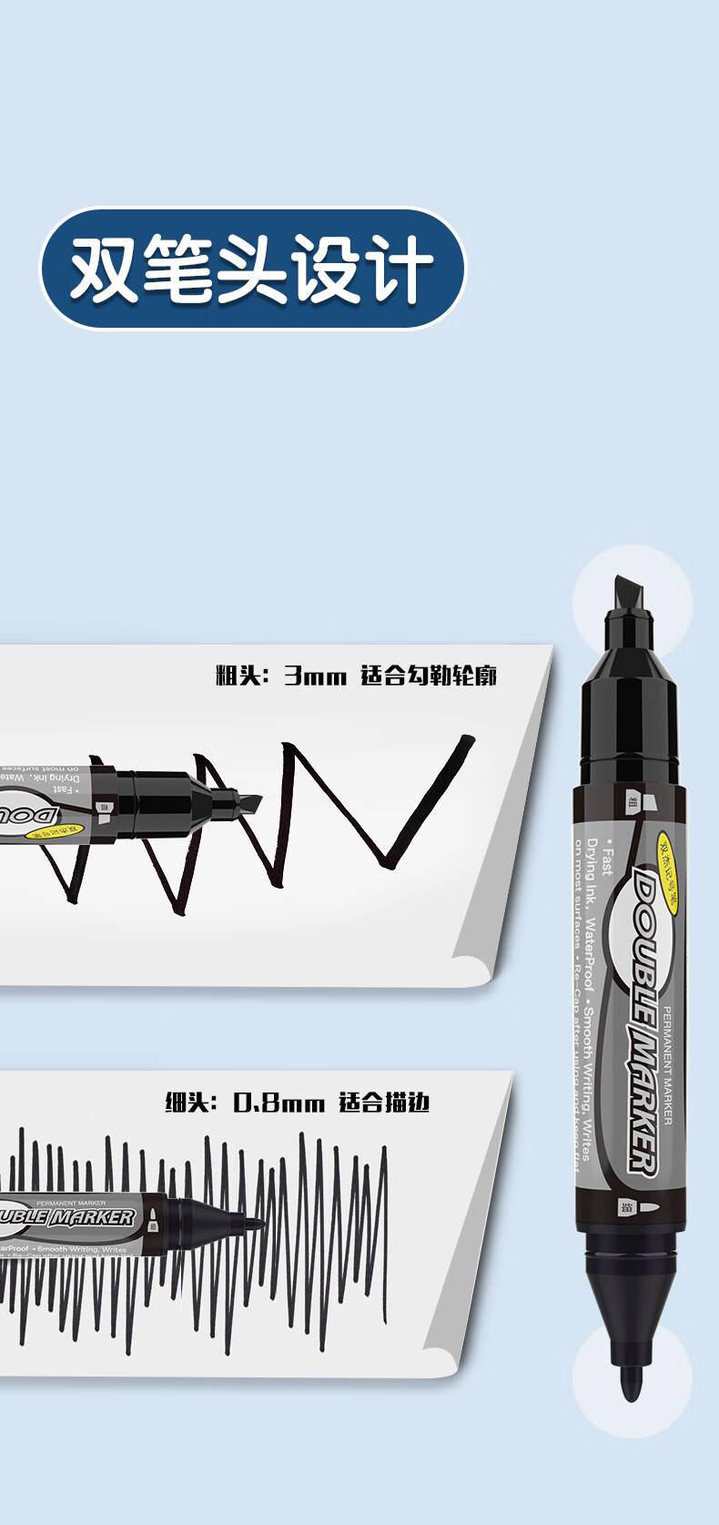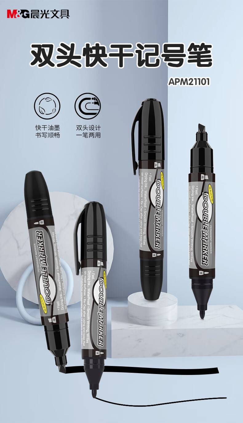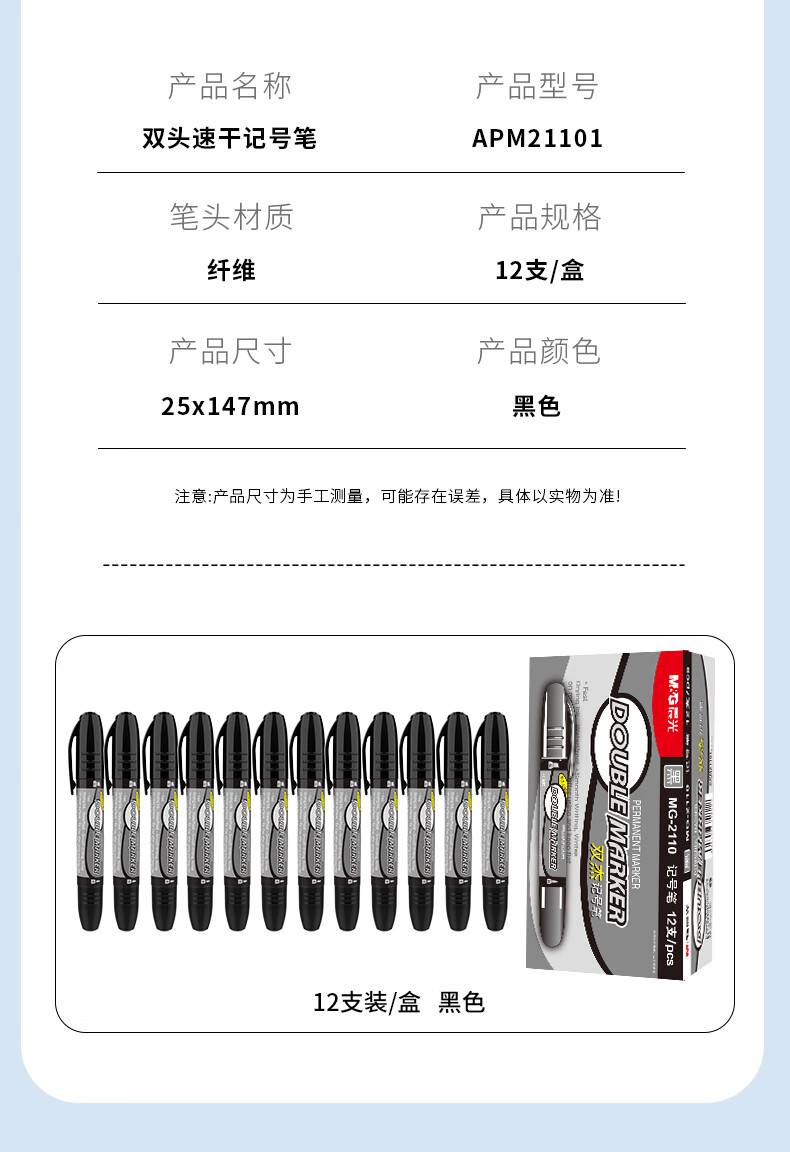 晨光(M&G)文具 双粗头大容量黑色物流笔记号笔 马克笔 12支/盒MG2110