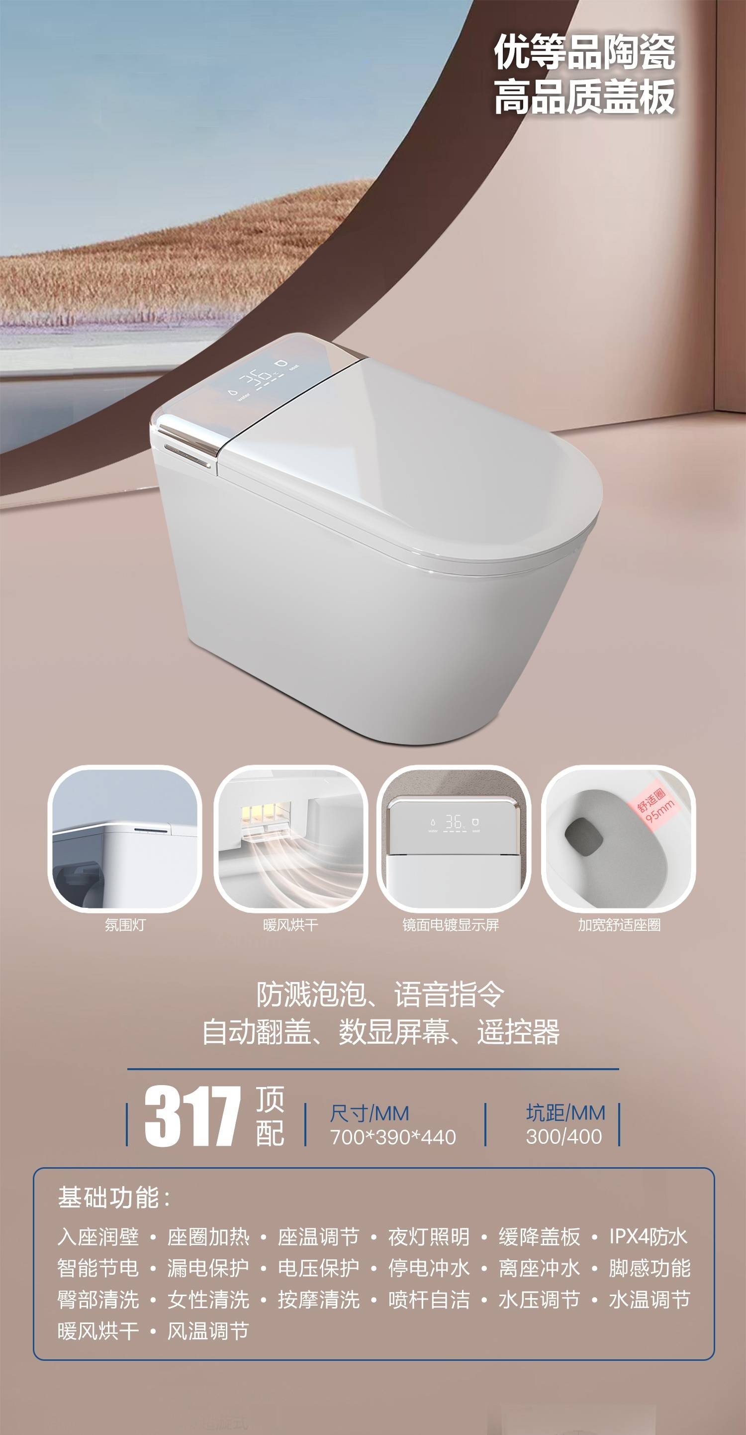 智能马桶一体式即热家用坐便器无水压遥控全自动翻盖冲水 绿歆
