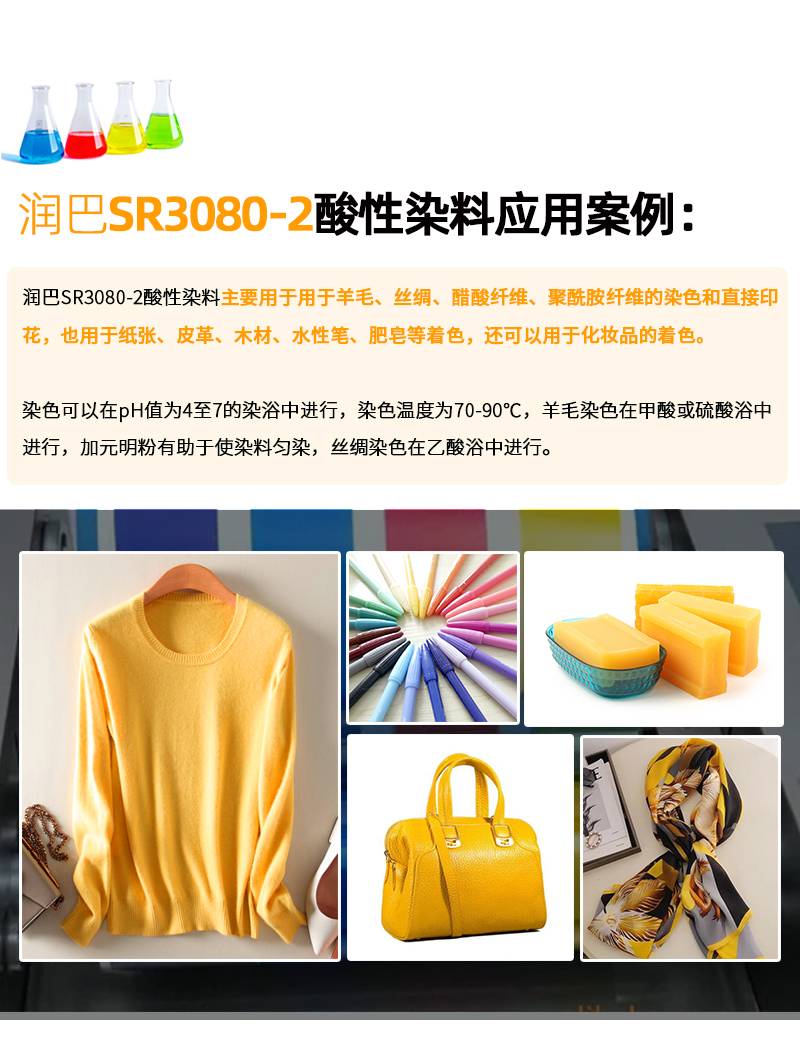 2222润巴SR3080-2红光黄阴离子酸性染料水溶染料黄色酸性黄23