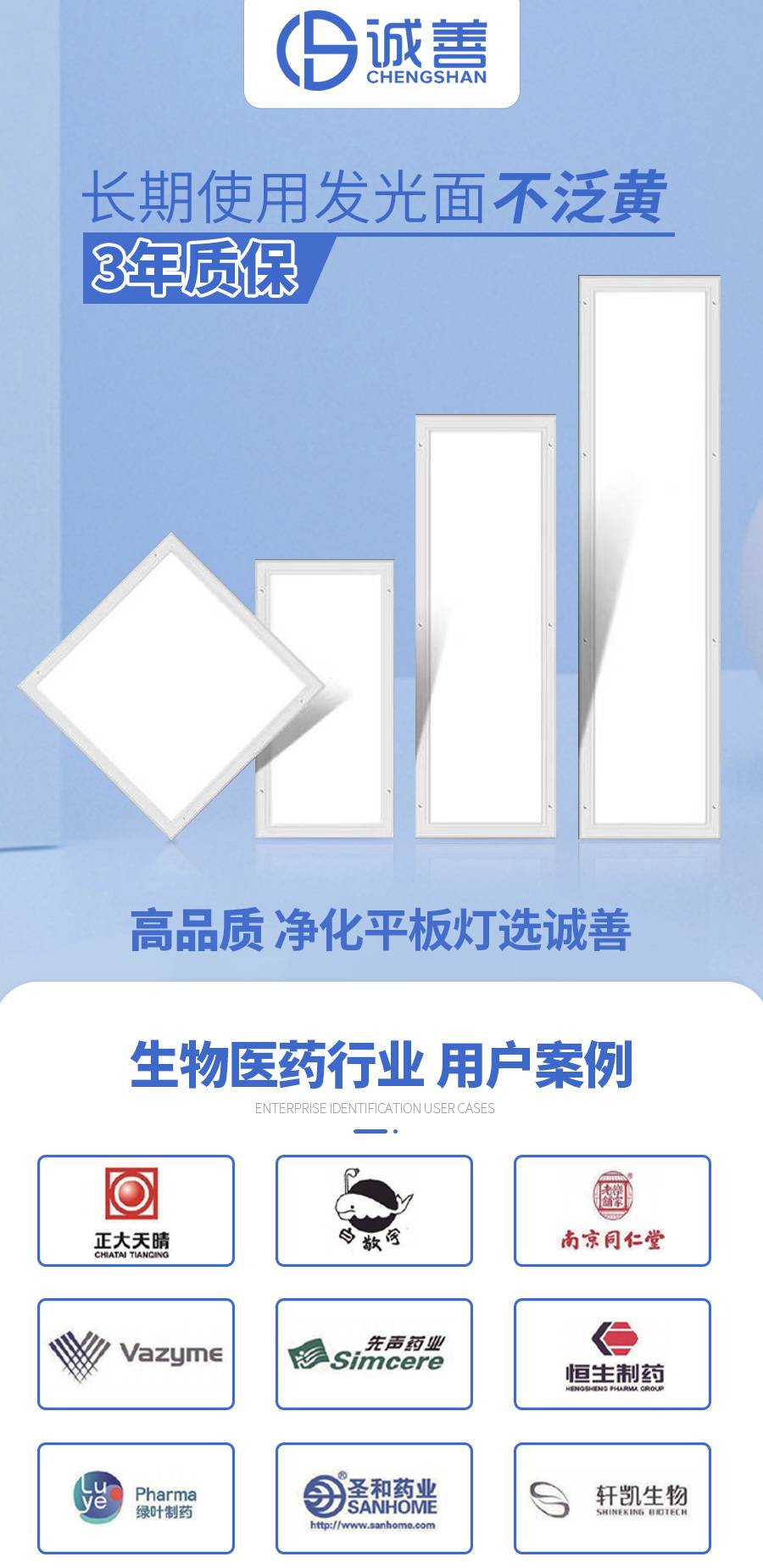 平板灯吸顶灯 医药生物工厂照明改造专用 下单赠送智能台灯【诚善】