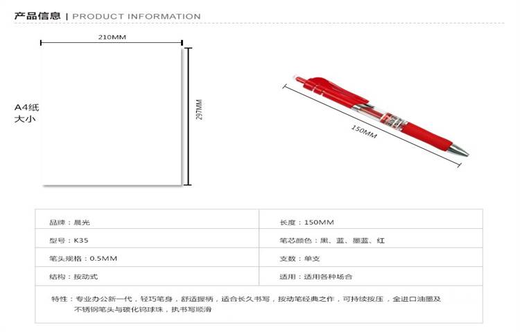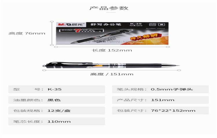 晨光(M&G)文具K35/0.5mm黑色中性笔 经典按动子弹头签字笔水笔