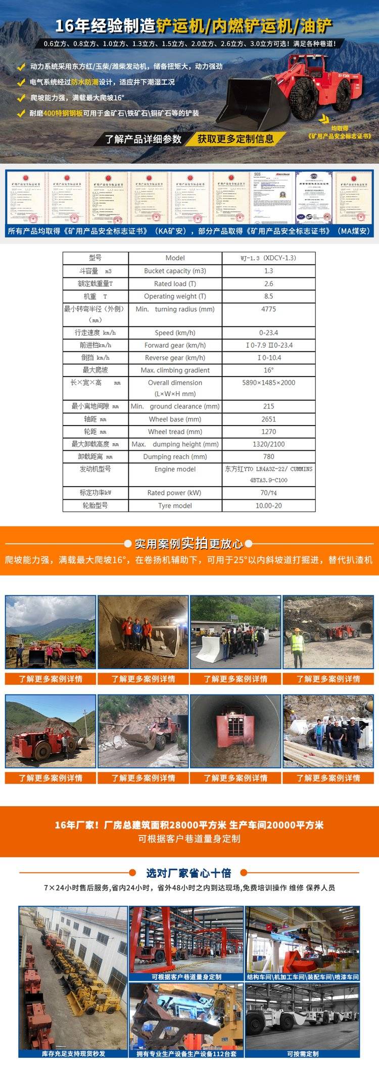 现代重工1.3立方内燃铲运机 双转向油缸 转向更平稳