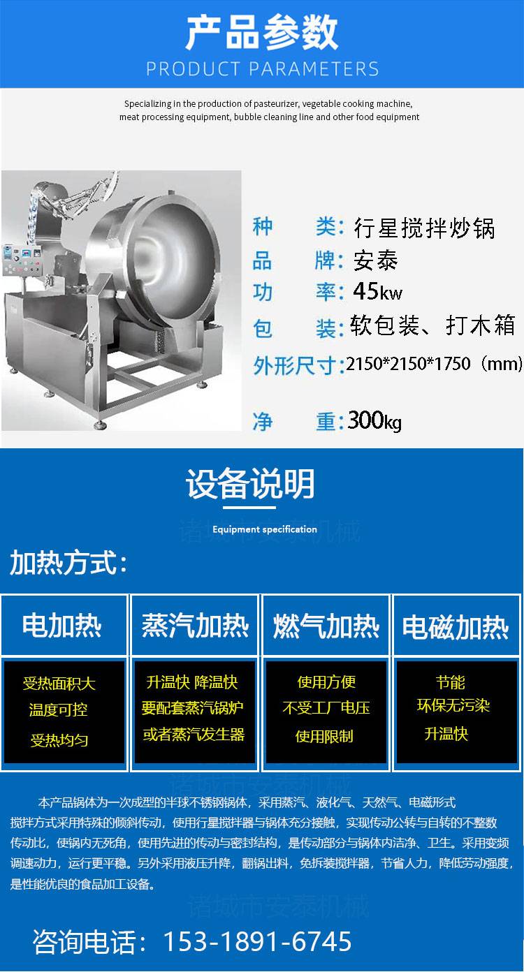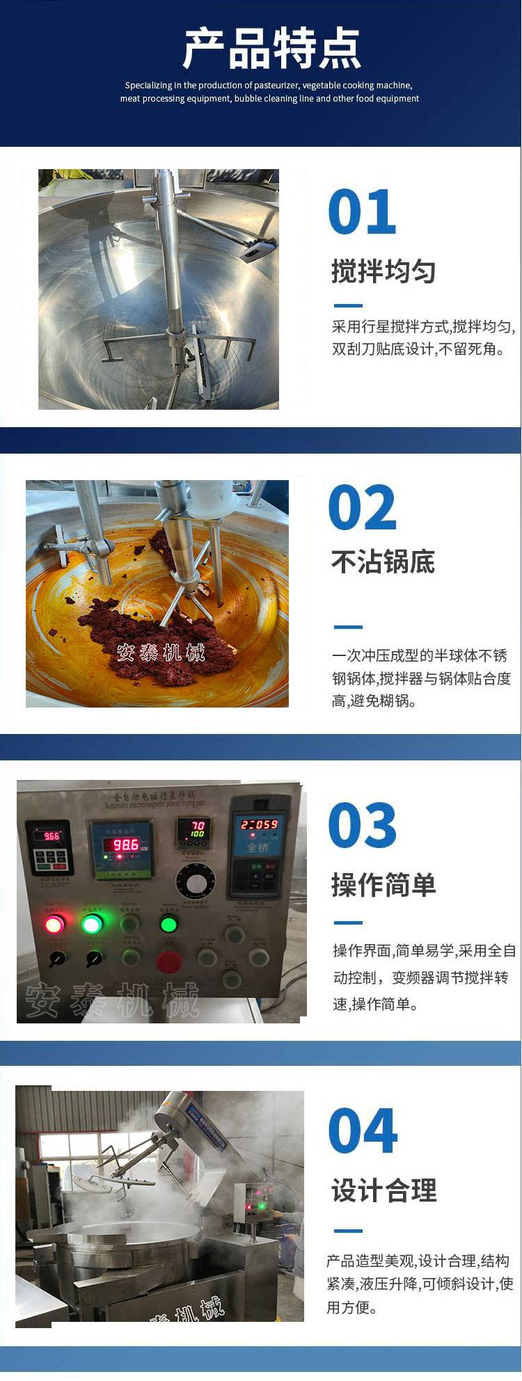 电加热中药炒制炒锅 电磁加热火锅底料自动翻炒锅 物料混合搅拌锅