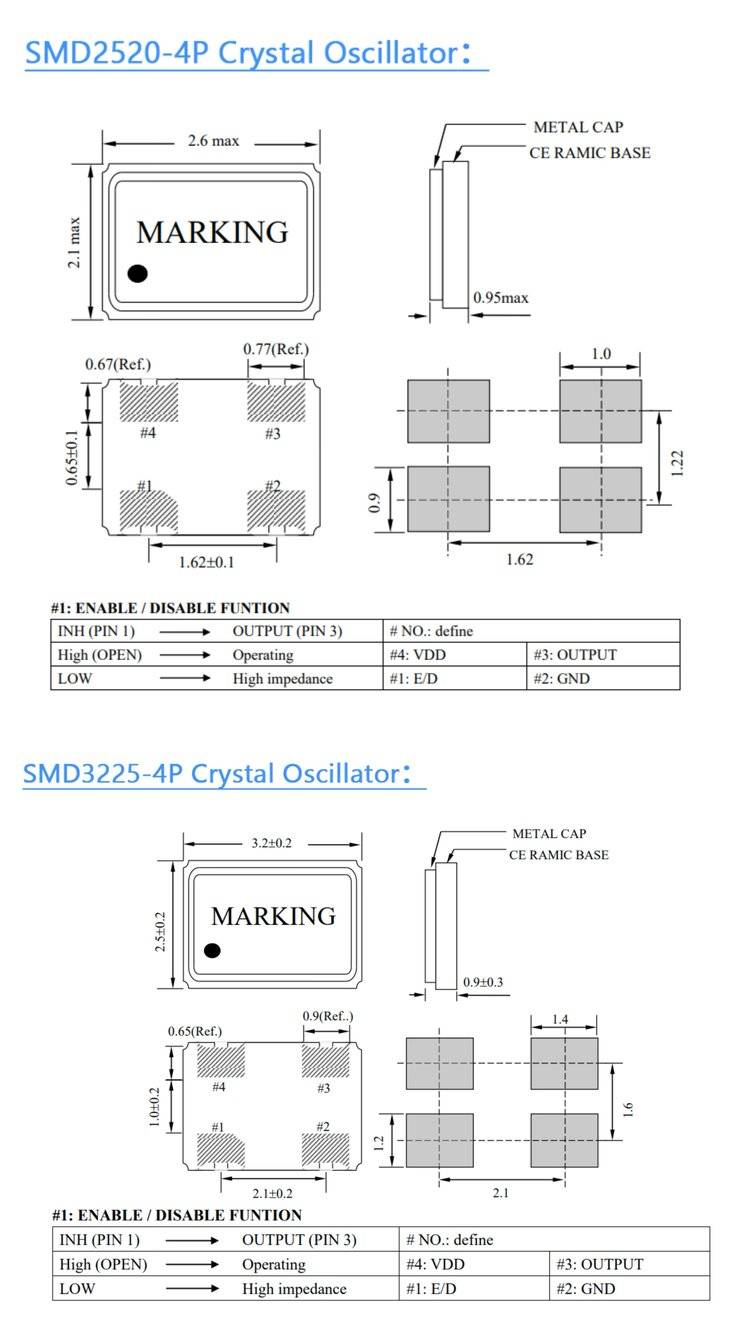 晶体振荡器的体积与封装: