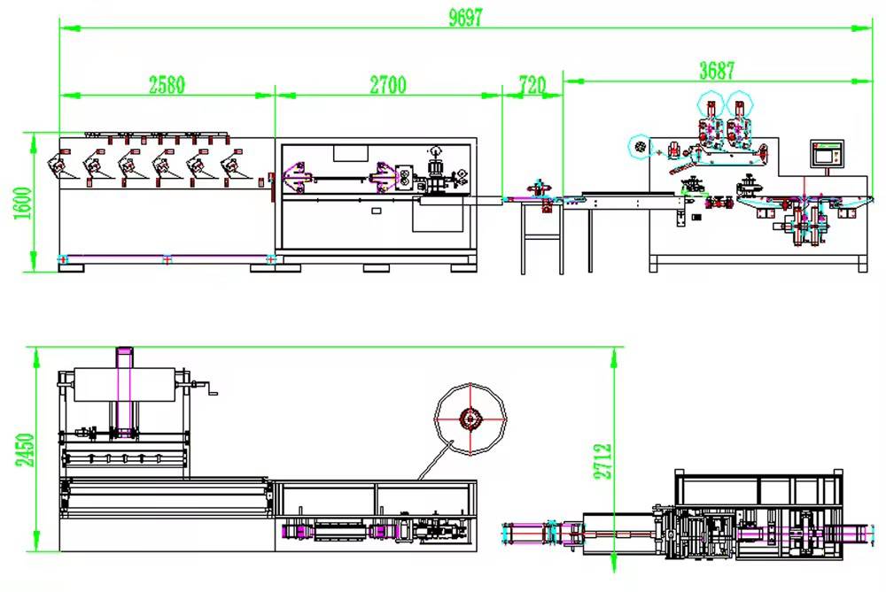 Hedder's wet towel production line, paper cutter, box full automatic, wet towel wrapper