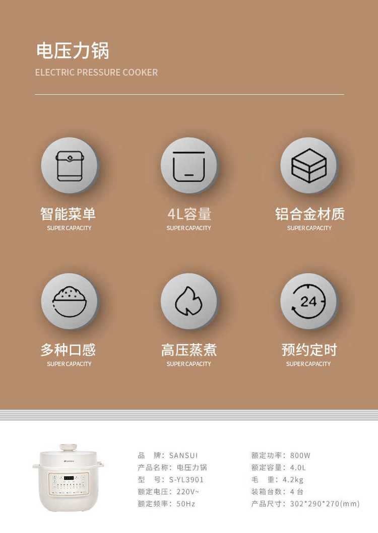 山水 电压力锅 S-YL3901 美泽商务拓客礼品 MY-JBH-(T)-946