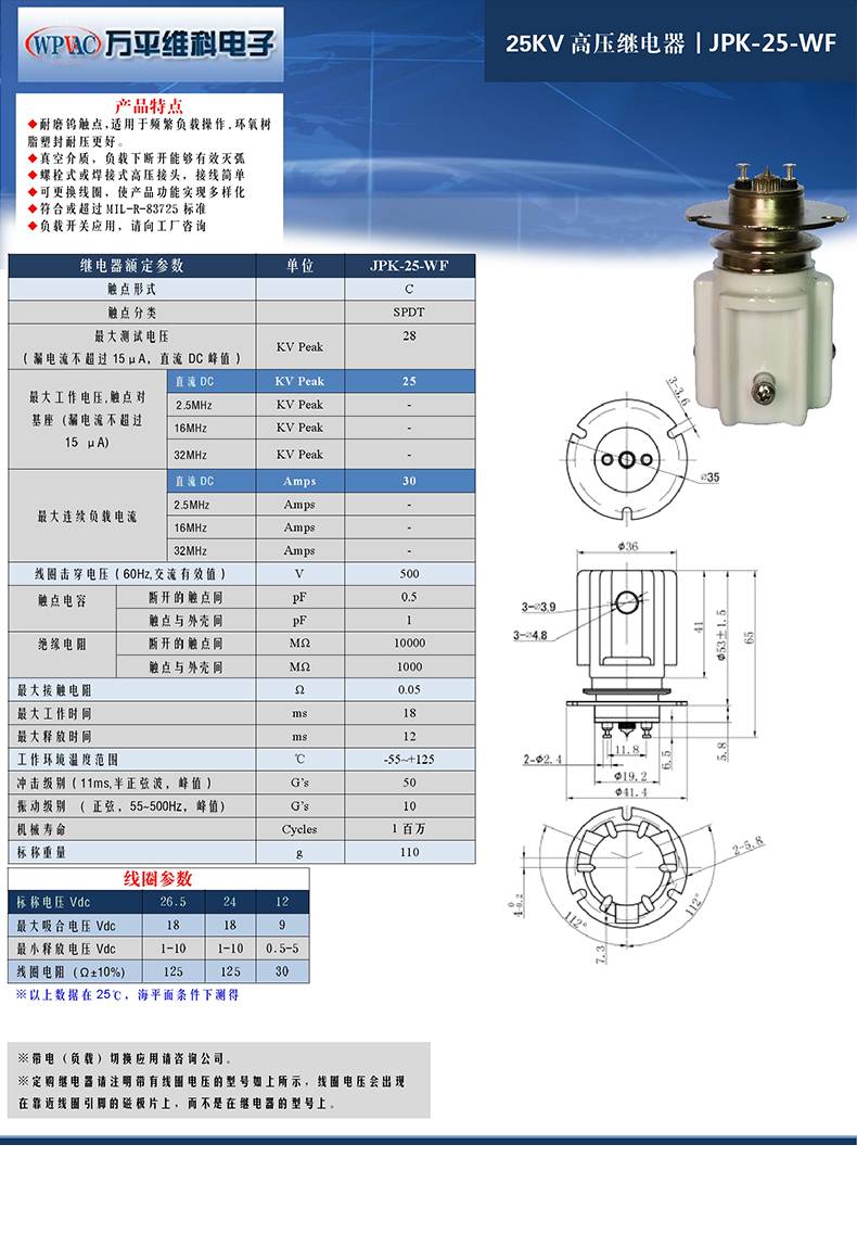 厂家批发 25KV高压继电器JPK-25-WF真空高压继电器