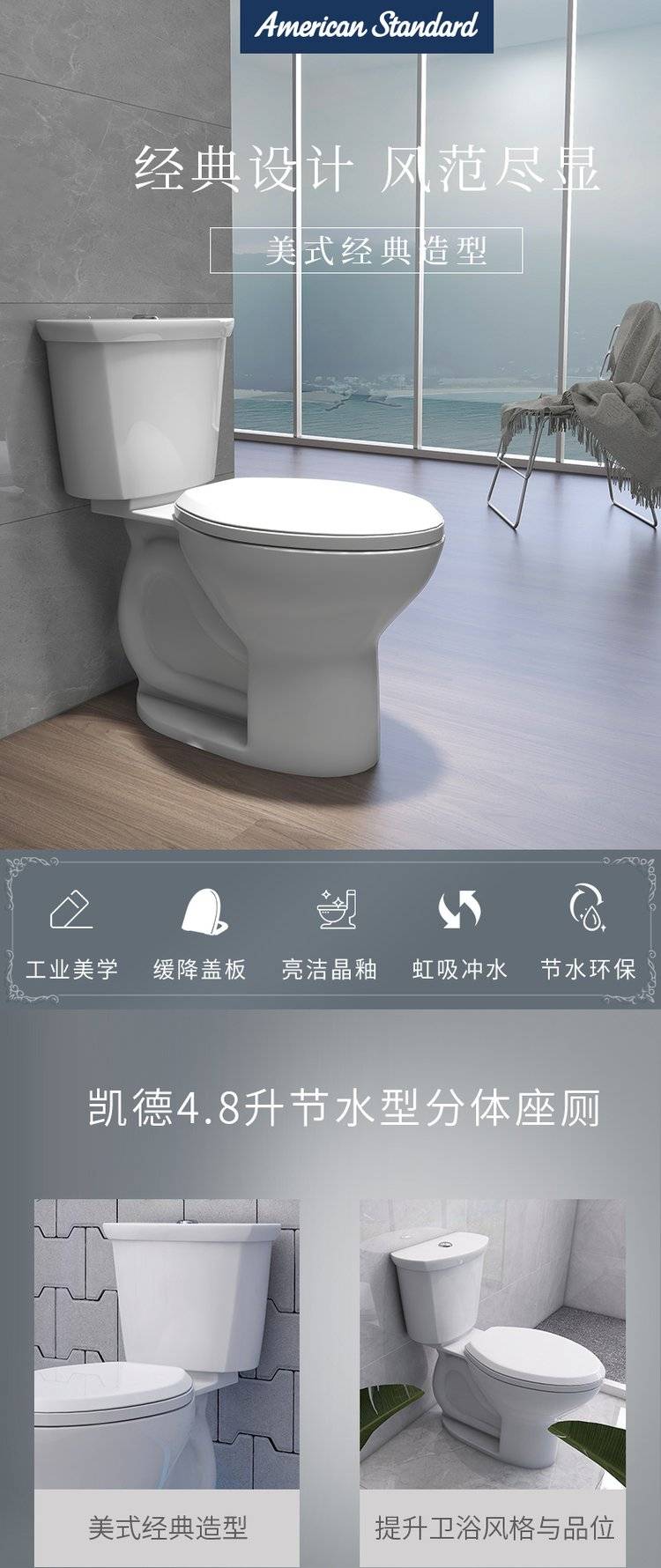 美标卫浴坐便器CP-2791 2792科德节水分体抽水直冲式缓降盖板马桶