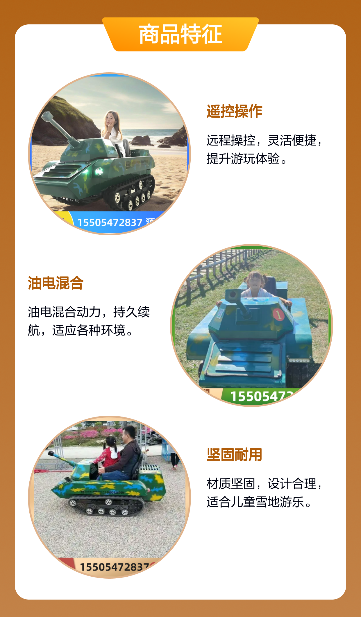 户外遥控坦克车厂家直供 儿童雪地游乐设施 油电混合动力