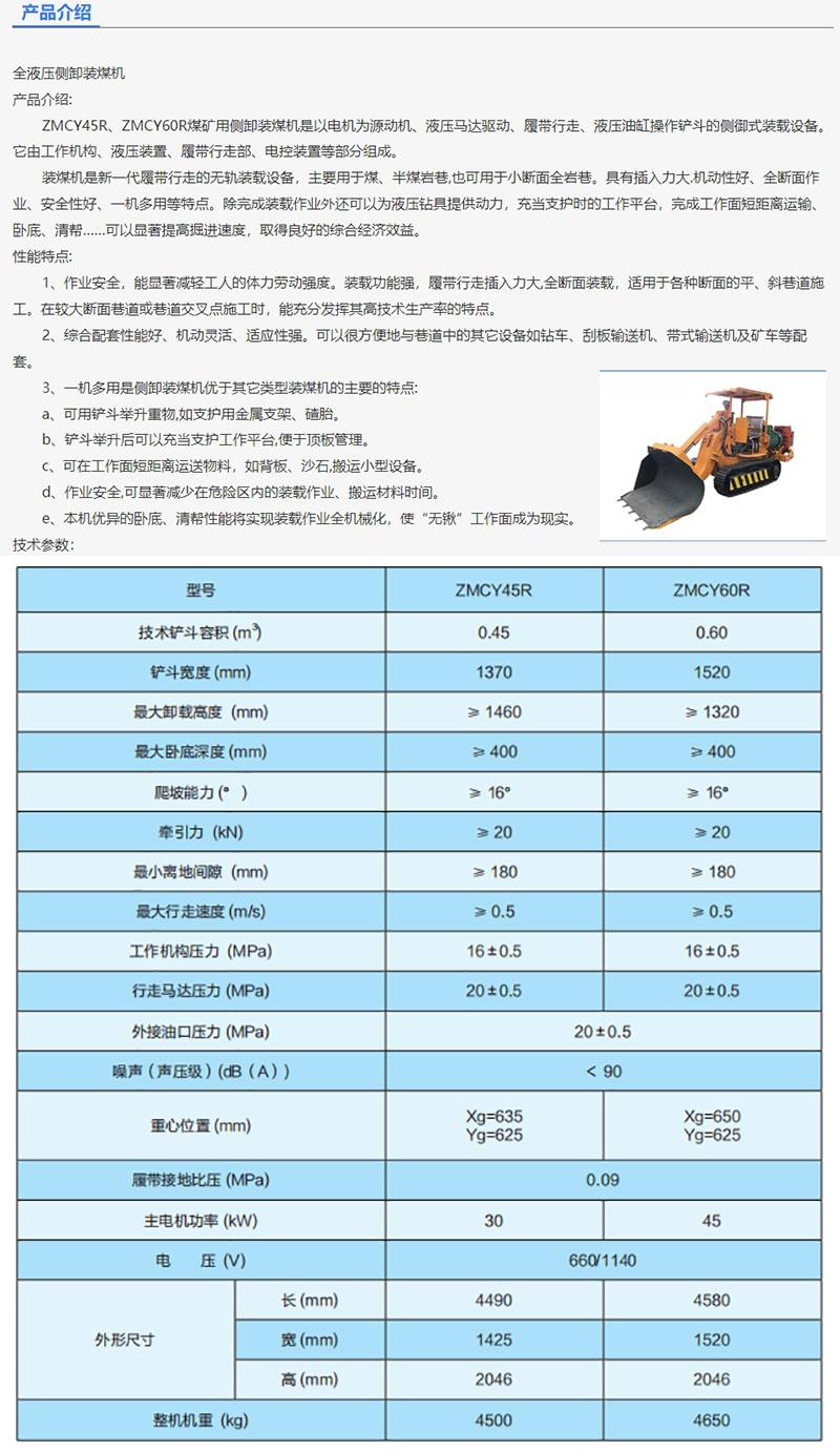全液压侧卸装煤机 矿用履带式无轨装载设备 装载机 铲斗车ZMCY60R