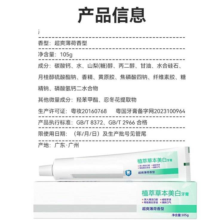 植萃草本美白牙膏105g支持团购一件代发OEM厂家定制代加工