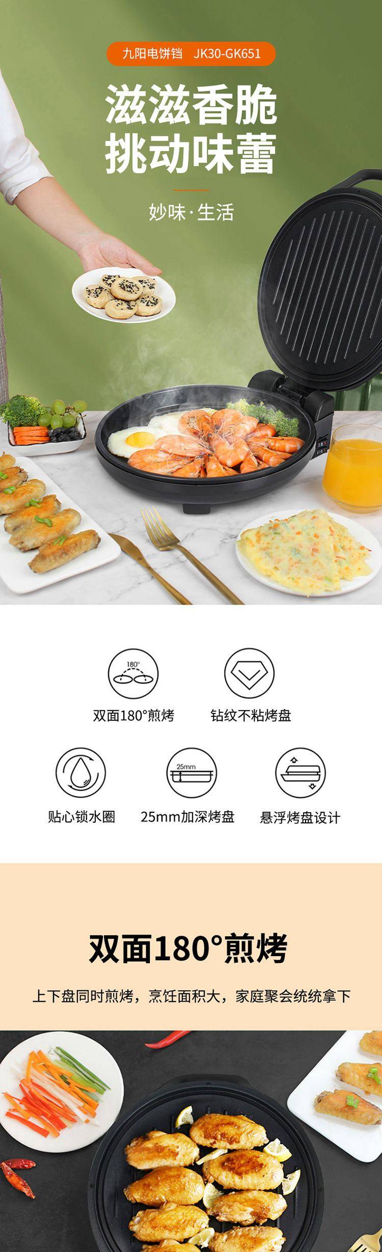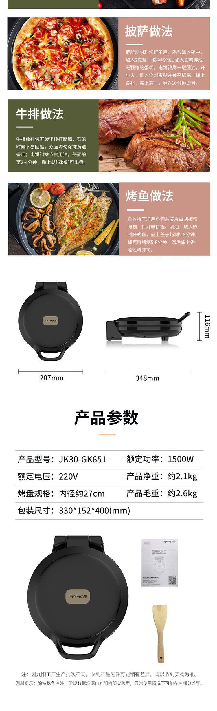 九阳电饼铛JK30-GK651烙饼机家用双面加热煎烤机福利礼品代理